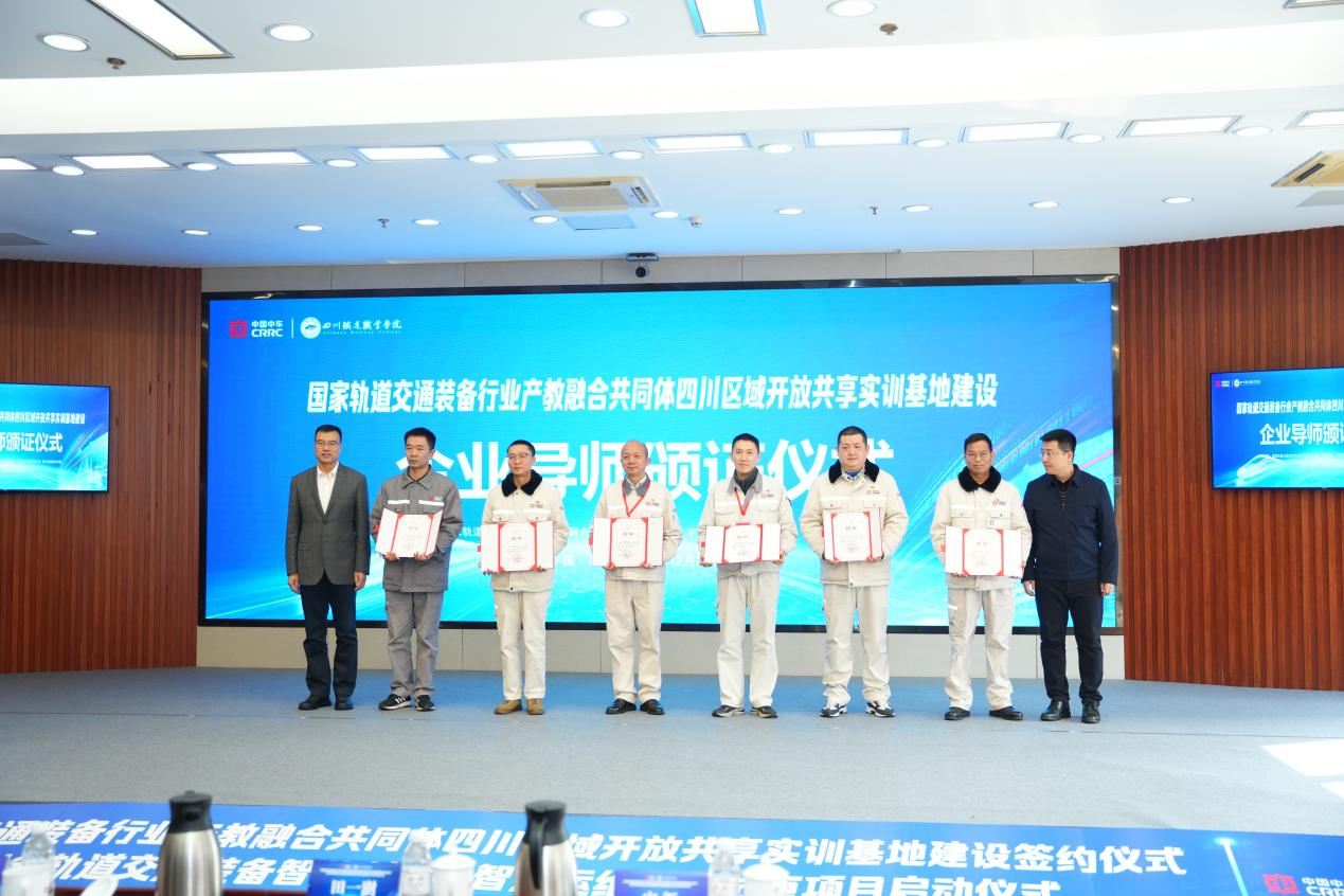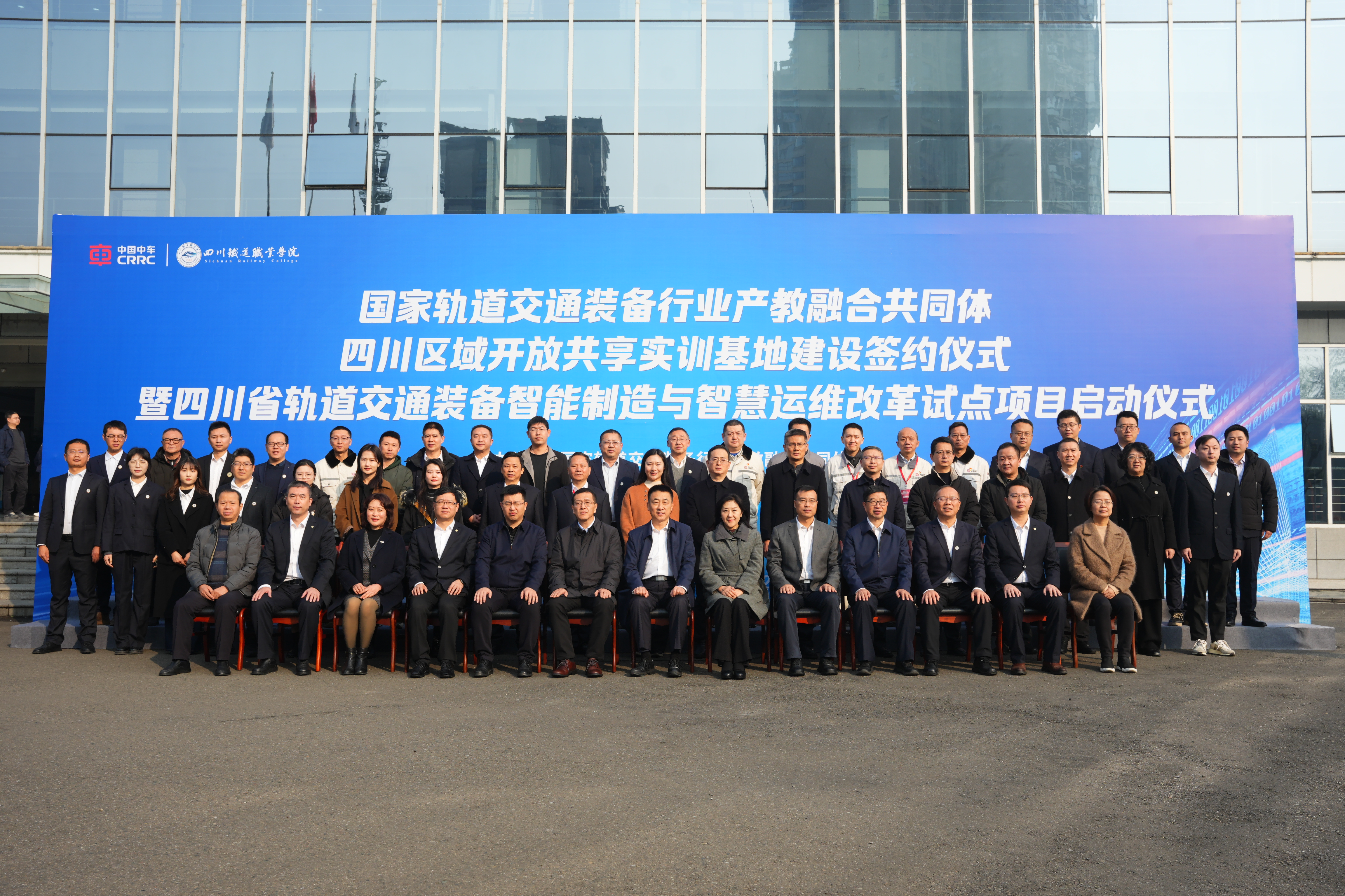 中国中车集团有限公司党委委员、工会主席赵虎出席活动并讲话。他指出,共享基地通过整合中车地方企业的职业教育资源,充分发挥地方高校人才培养与科学研究优势,打造了一系列开放共享的实训基地,这必将成为连接政府、企业、院校的桥梁纽带,推动地方产业和教育资源共享、优势互补、协同发展,优化人才培养结构,提升技术创新能力,为轨道交通装备行业的转型升级提供更坚实的人才保障和智力支持。此次国家轨道交通装备行业产教融合共同体四川区域开放共享实训基地建设签约仪式的举行,对于深化校企合作,促进教育链、人才链与产业链、创新链的有机衔接,具有重要的里程碑意义。他希望四川区域开放共享实训基地建设:一是要打造赓续红色基因、传承红色文化的 “示范校”;二是要打造轨道交通装备行业原创技术的 “策源地”;三是要打造轨道交通装备行业科技人才的 “孵化园”;四是要打造推进形成新质生产力的 “动车头”。
