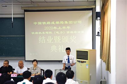 经过40天的集中培训,中国铁路成都局集团有限公司成都机务段送培的117名铁路机车司机资格培训班学员在我院内江校区圆满完成培训任务,顺利结业。6月15日下午,结业典礼暨表彰大会在多媒体四室举行。学院继续教育中心主任周江涛、成都机务段北一运用车间副主任王大军出席了大会。