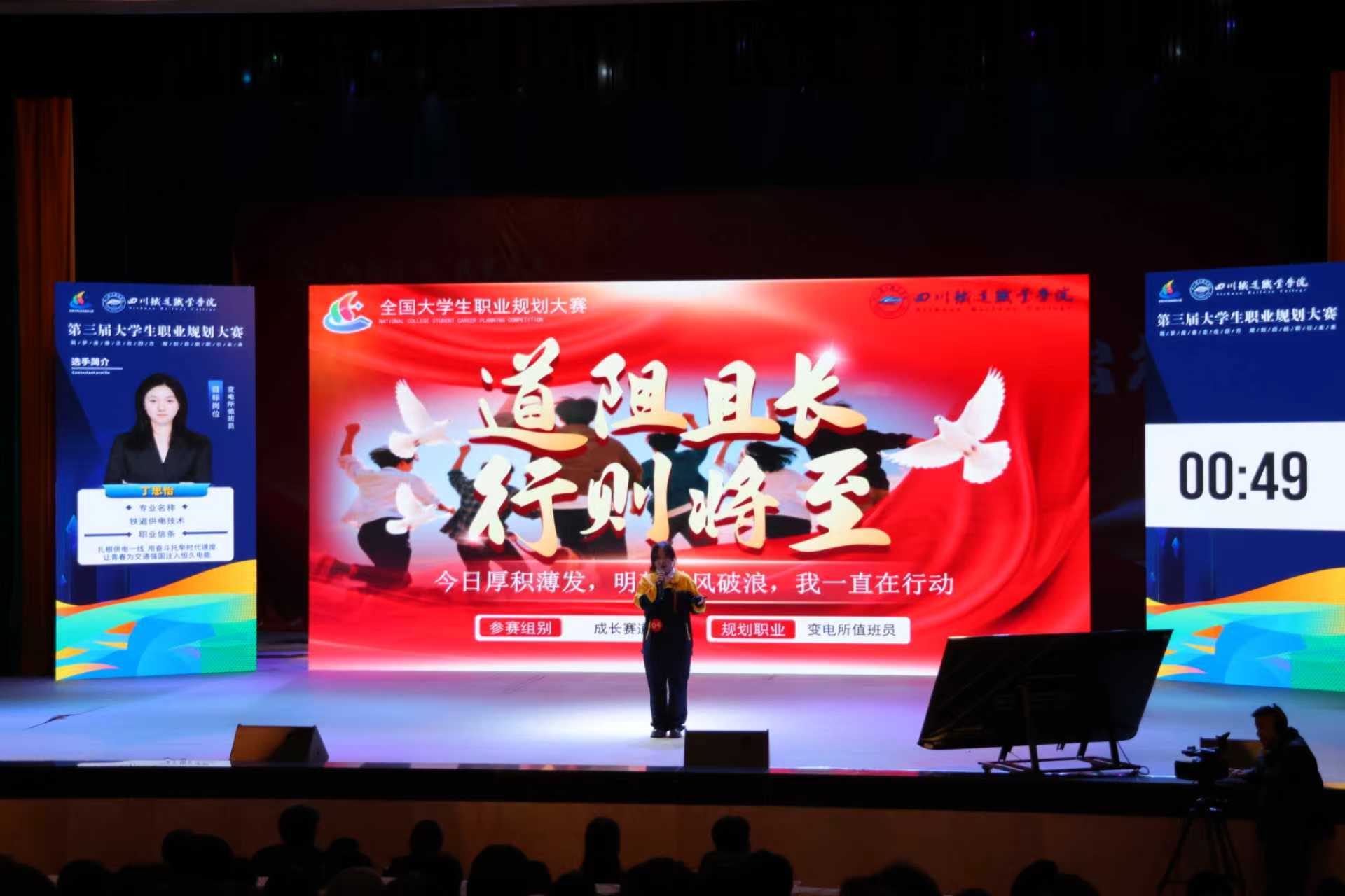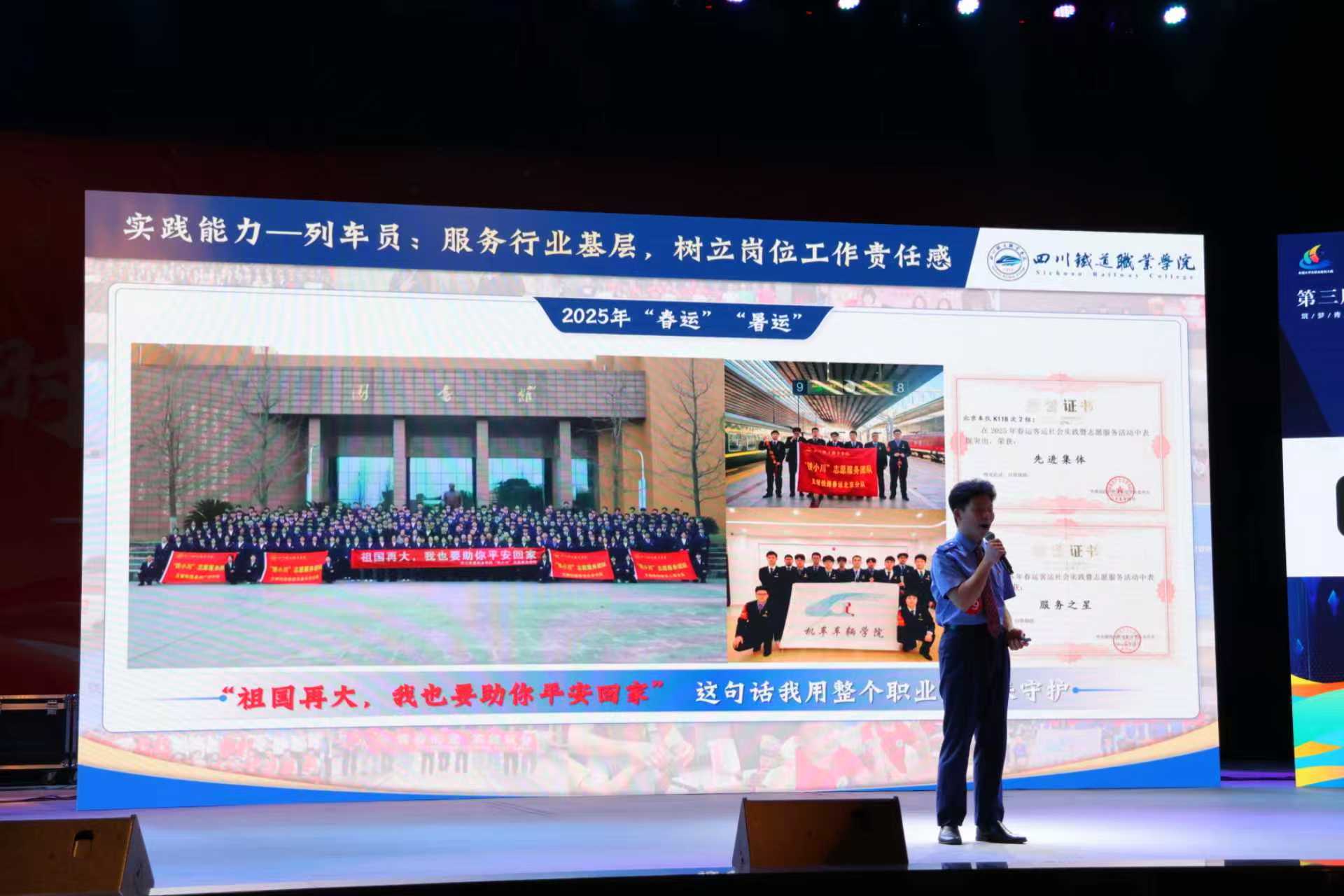 代学灵在致辞中表示,学校始终坚持“为党育人、为国育才”,将职业生涯教育贯穿人才培养全过程,深入推进就业指导“进支部、进课堂、进云端、进宿舍、进家庭、进企业”,全力构建三全育人的就业体系。他强调,职业规划是青春远航的灯塔,对职教学子立足赛道、成就未来至关重要。学校高度重视此项赛事,将其视为落实立德树人根本任务、深化教育教学改革、提升人才培养质量的关键举措。他对同学们提出三点希望:一是立大志,将职业理想融入时代需求,紧扣轨道交通发展与四川地方产业大局,让青春扎根家国热土。二是练硬功,让职业规划落地实践,以赛查漏补缺,把蓝图化为勤学动力,练就过硬专业本领。三是敢追梦,以奋斗书写青春答卷,以大赛为起点,永葆进取之心,在职业赛道脚踏实地逐梦前行。