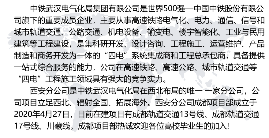 中铁武汉电气化局集团有限公司西安分公司成都项目部招聘简章