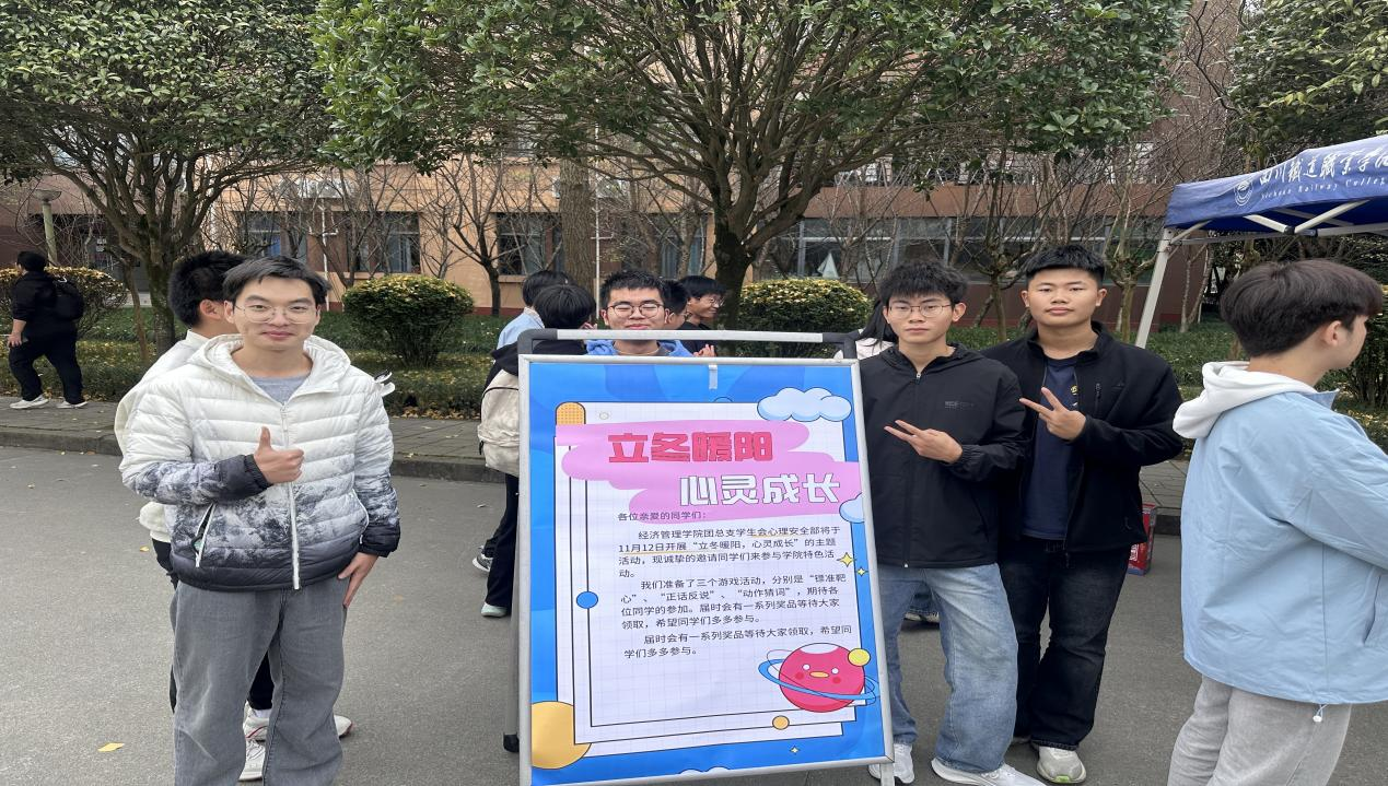 为帮助学生释放情绪压力、培养积极心态,在立冬时节传递心灵关怀,11月13日,经济管理学院团总支学生会成功举办“立冬暖阳 心灵成长”心理健康教育活动。全院百余名学生积极参与,现场气氛温馨而活跃。