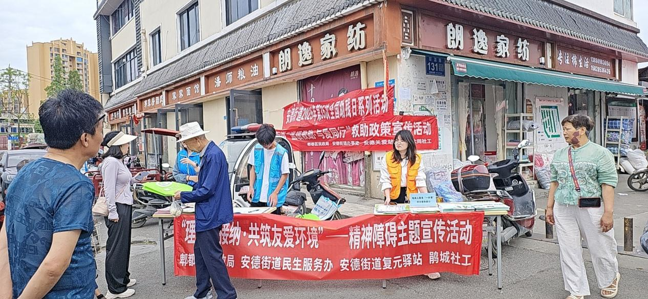 2025年5月15日,AC米兰中文官方网站经济管理学院志愿者团队联合安德街道民生服务办、安德街道复元驿站及鹃城社工,在安德街道开展了以“接纳·共筑友爱环境”精神障碍主题宣传活动。此次活动旨在提高公众对精神障碍的认识,促进社区和谐发展。