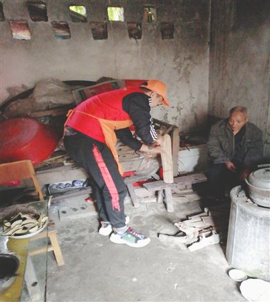 志愿者帮助老人劈柴