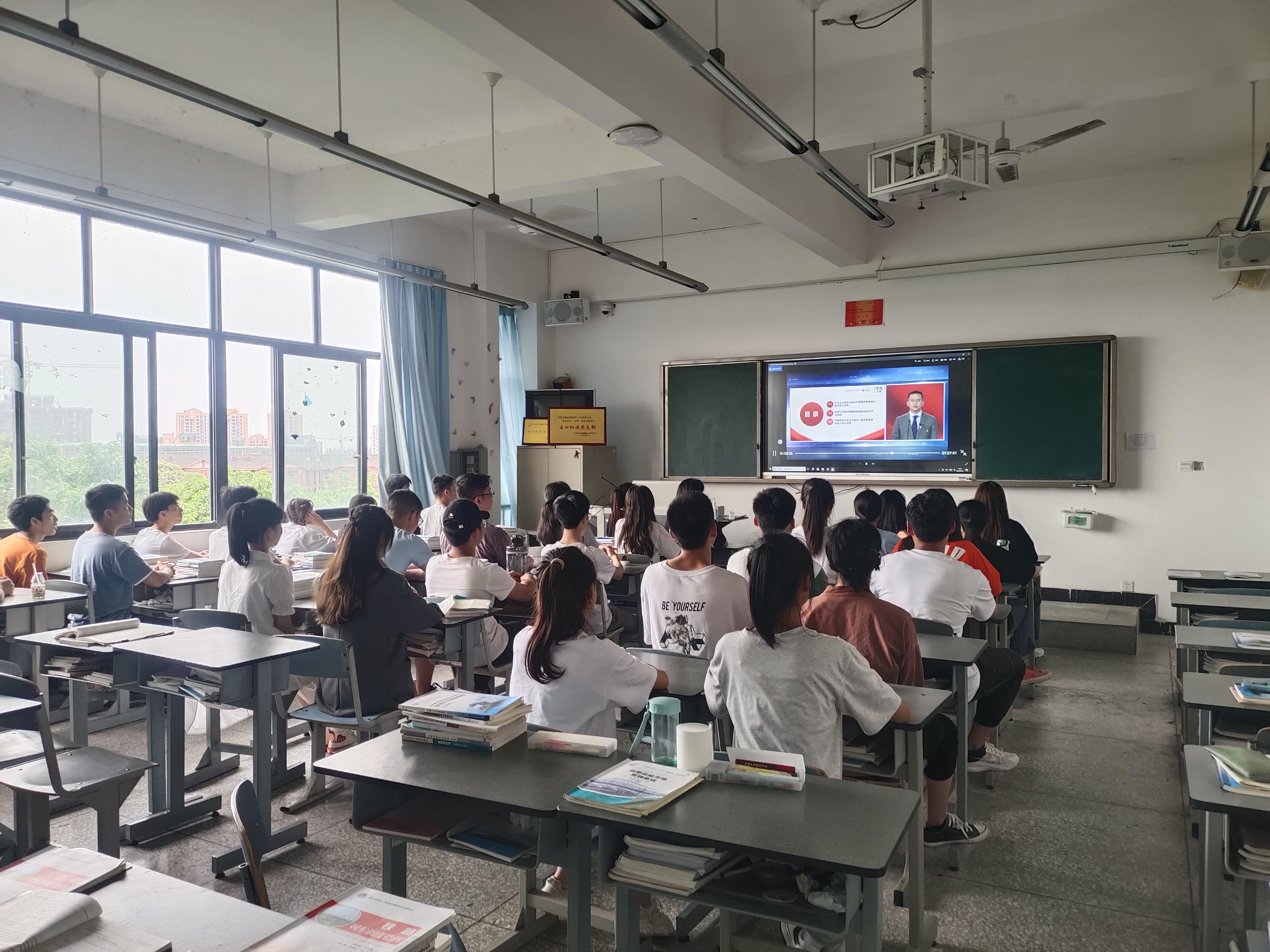 为深入贯彻落实习近平总书记关于深化思想政治理论课改革创新和“大思政课”的重要指示批示精神,全面落实习近平总书记在党史学习教育动员大会上的重要讲话精神和《中共中央关于在全党开展党史学习教育的通知》的部署安排,管理系于5月9日组织在校12个班级进行“同上‘四史’思政大课” ——“同上新中国思政大课”的集体学习和讨论。