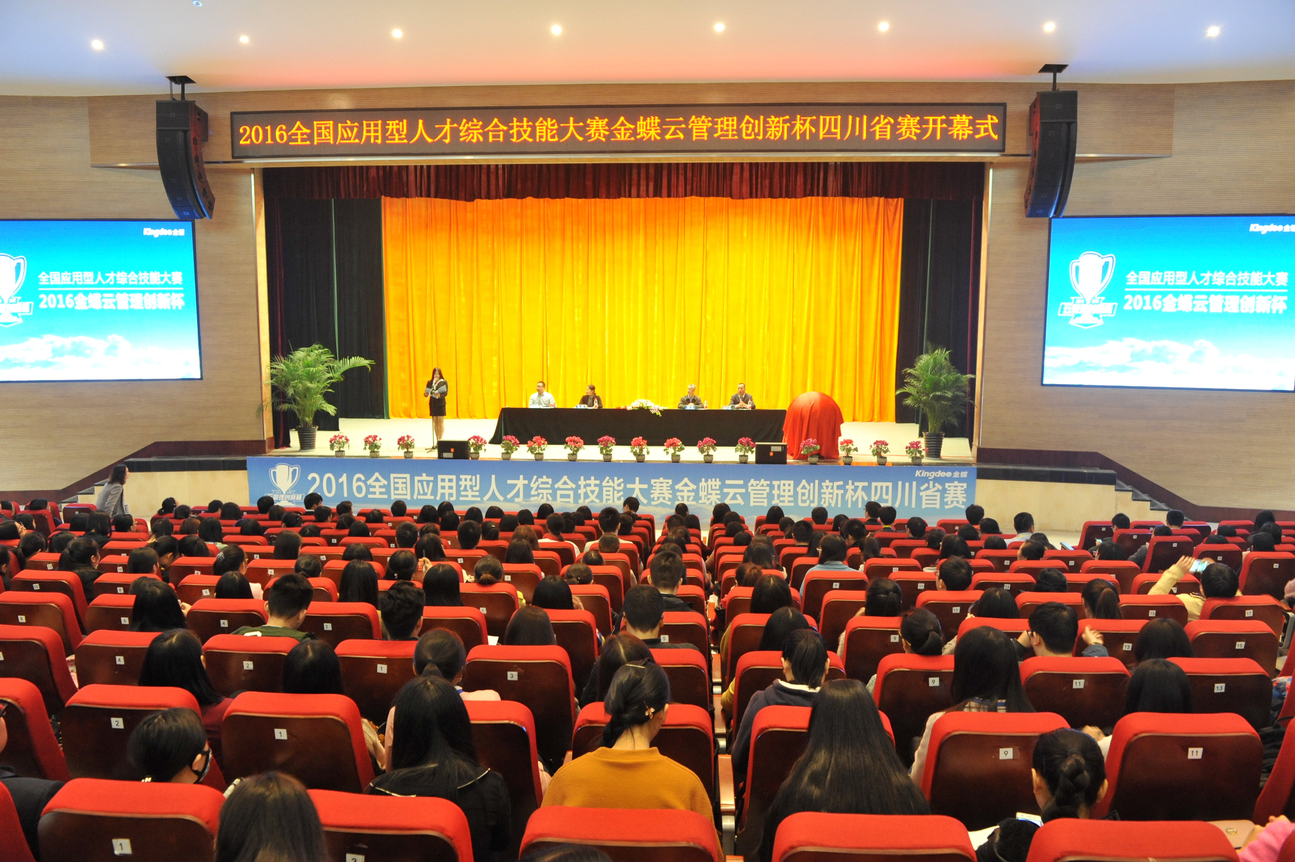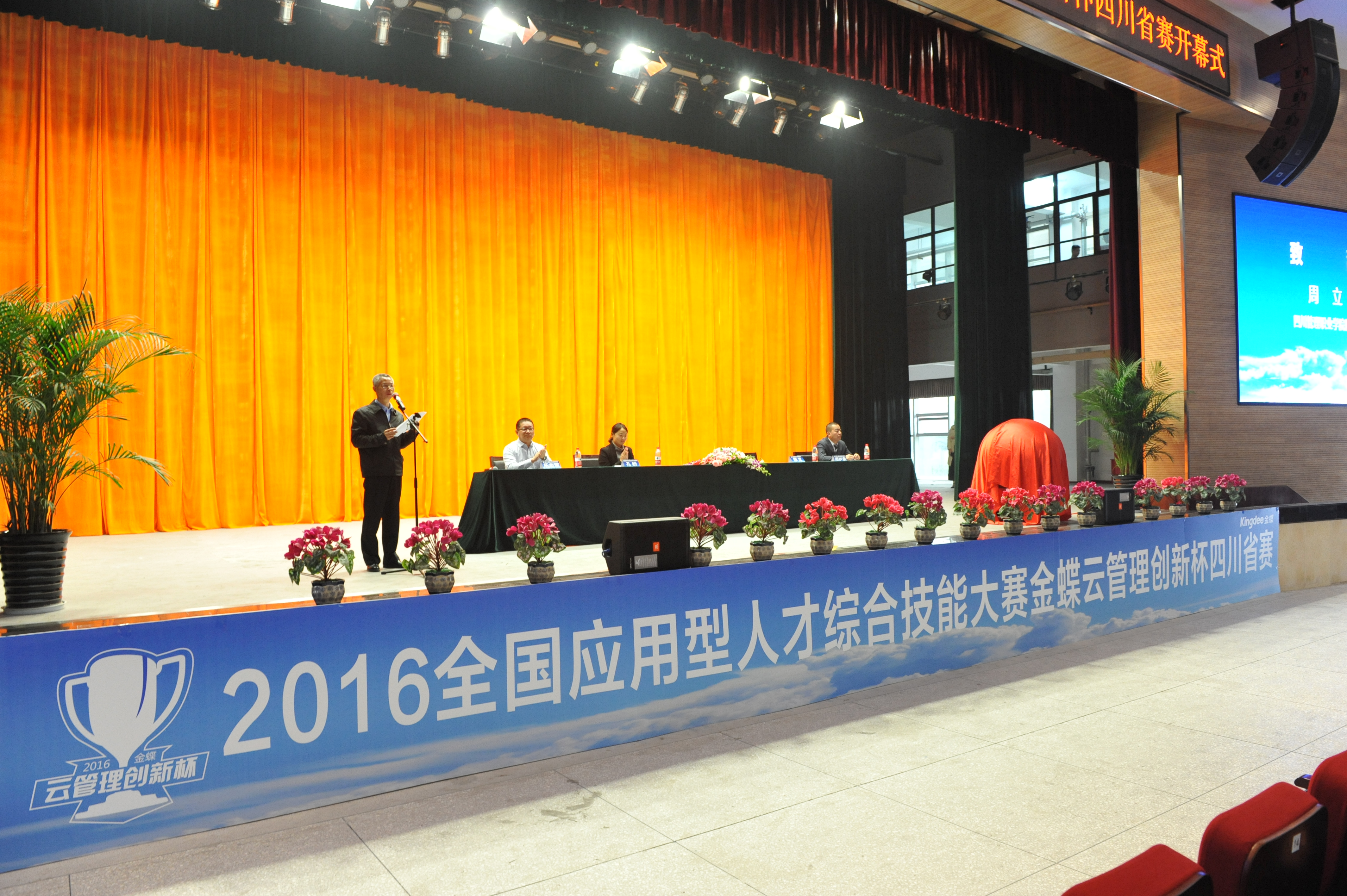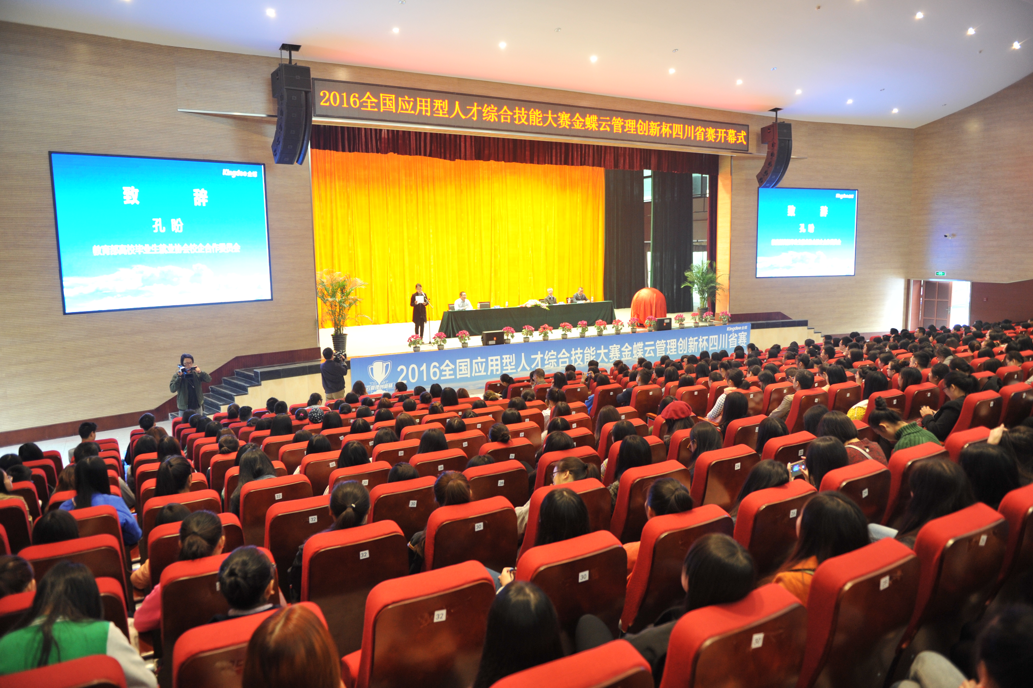 学院院长周立、教育部高校毕业生就业协会校企合作委员会主任助理孔盼、金蝶精一信息科技服务有限公司执行副总裁乐志军、金蝶软件(中国)有限公司成都分公司总经理项岁泉出席开幕式。