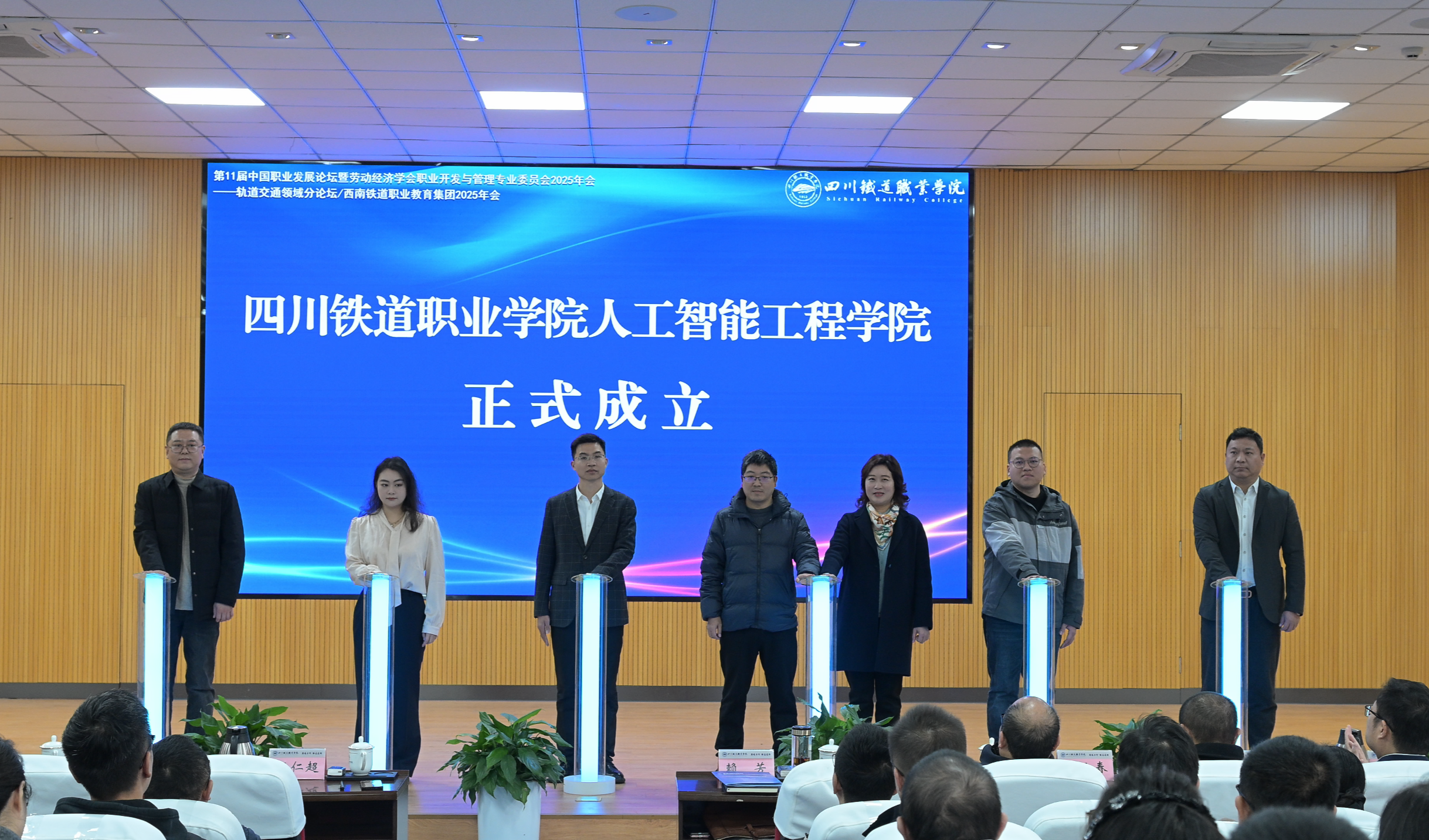 2025年11月23日,第11届中国职业发展论坛轨道交通分论坛暨西南铁道职业教育集团2025年会在AC米兰中文官方网站成功举办。会上,举行人工智能工程学院成立仪式及四川省心理学会职业心理与生涯教育专委会揭牌仪式。来自人工智能、轨道交通领域的专家学者、企业代表及职教集团成员单位等共100余家单位参会。论坛由副校长王浩澂、黄恩兴主持。