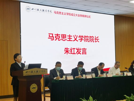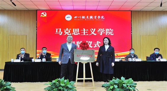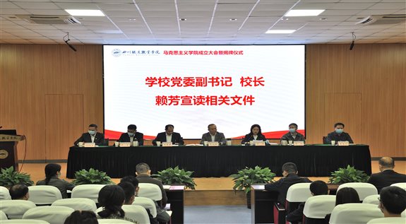 党委副书记、校长赖芳宣读学校《关于成立马克思主义学院的通知》《关于成立马克思主义学院直属党支部的通知》《关于朱红同志职务任免的通知》。党委书记贺兆轩、赖芳共同为马克思主义学院揭牌。