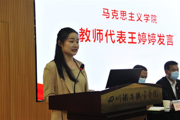 马克思主义学院院长朱红从“用好主渠道,守牢立院之本”“守好主阵地,筑牢建院之魂”“建好主力军,打牢强院之基”“走好特色路,抓牢兴院之道”四个方面作了表态发言。马克思主义学院教师王婷婷、青马社代表陈灏分别作了交流发言。