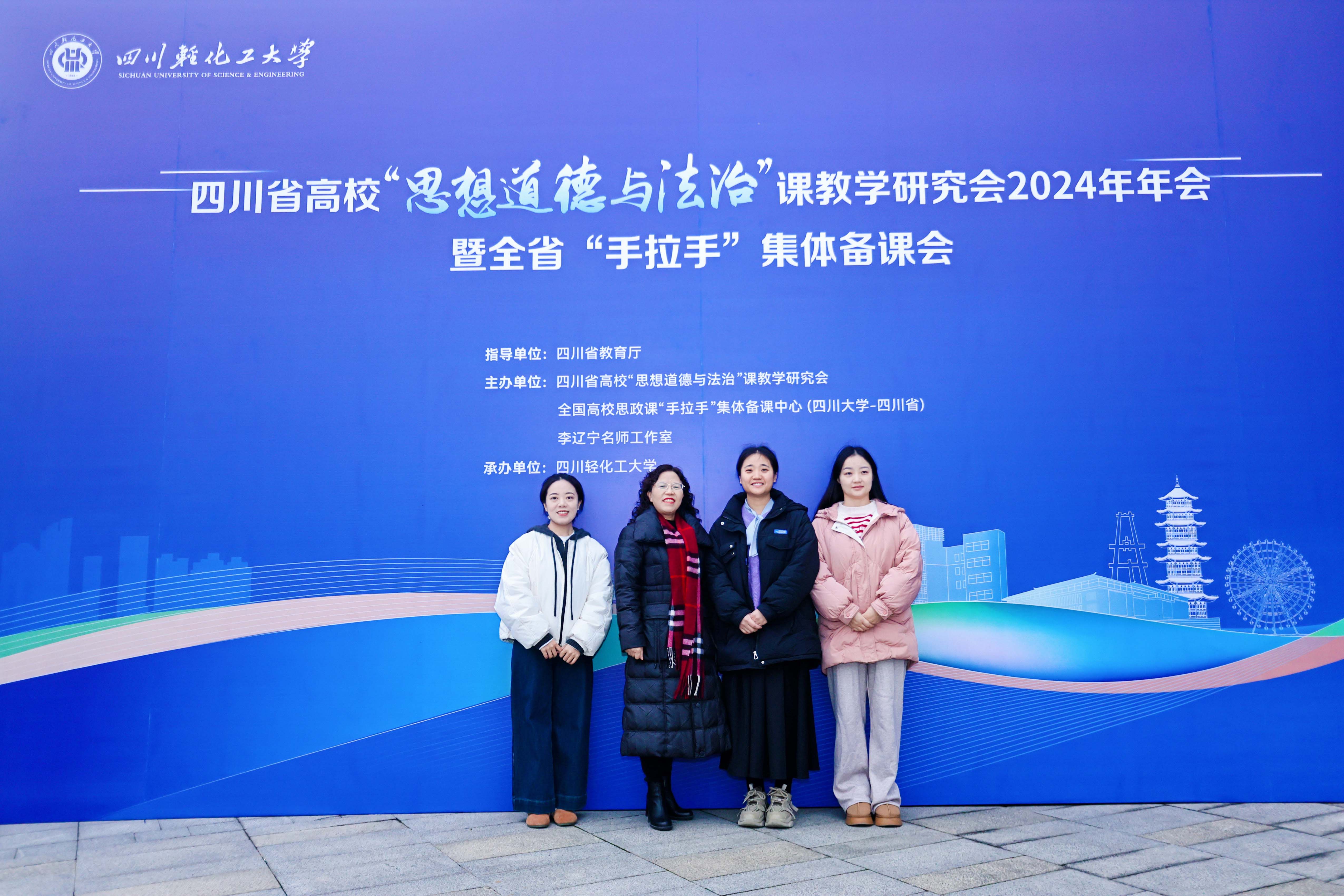 为深入学习贯彻习近平总书记对学校思政课建设作出重要指示精神,进一步提升四川省思想政治理论课建设水平,2024年12月12日至12月14日,四川省高校“思想道德与法治”课教学研究会2024年年会暨全省“手拉手”集体备课会在自贡召开,本次年会由四川省高校“思想道德与法治”课教学研究会主办,由四川轻化工大学马克思主义学院承办,来自全省80余所高校的200余名专家和教师参加了本次年会。在米兰官网马克思主义学院院长朱红带领下,思政课教师马丹、王婷婷、羊静参会。