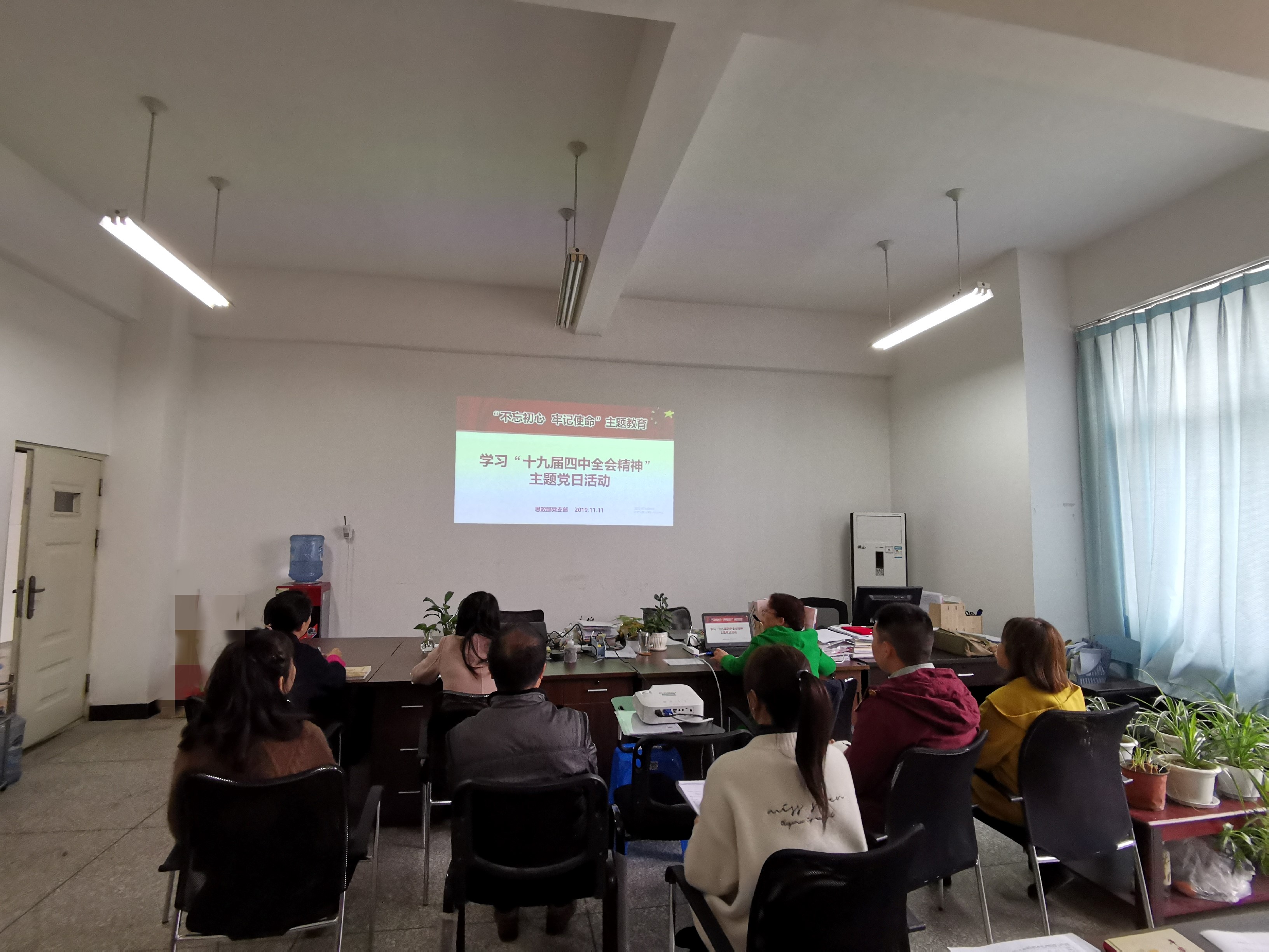 中国共产党第十九届中央委员会第四次全体会议于10月28日到31日在京召开。为深入学习贯彻党的十九届四中全会精神。思政党支部于11月11日组织全体党员教师在2404教室进行学习。