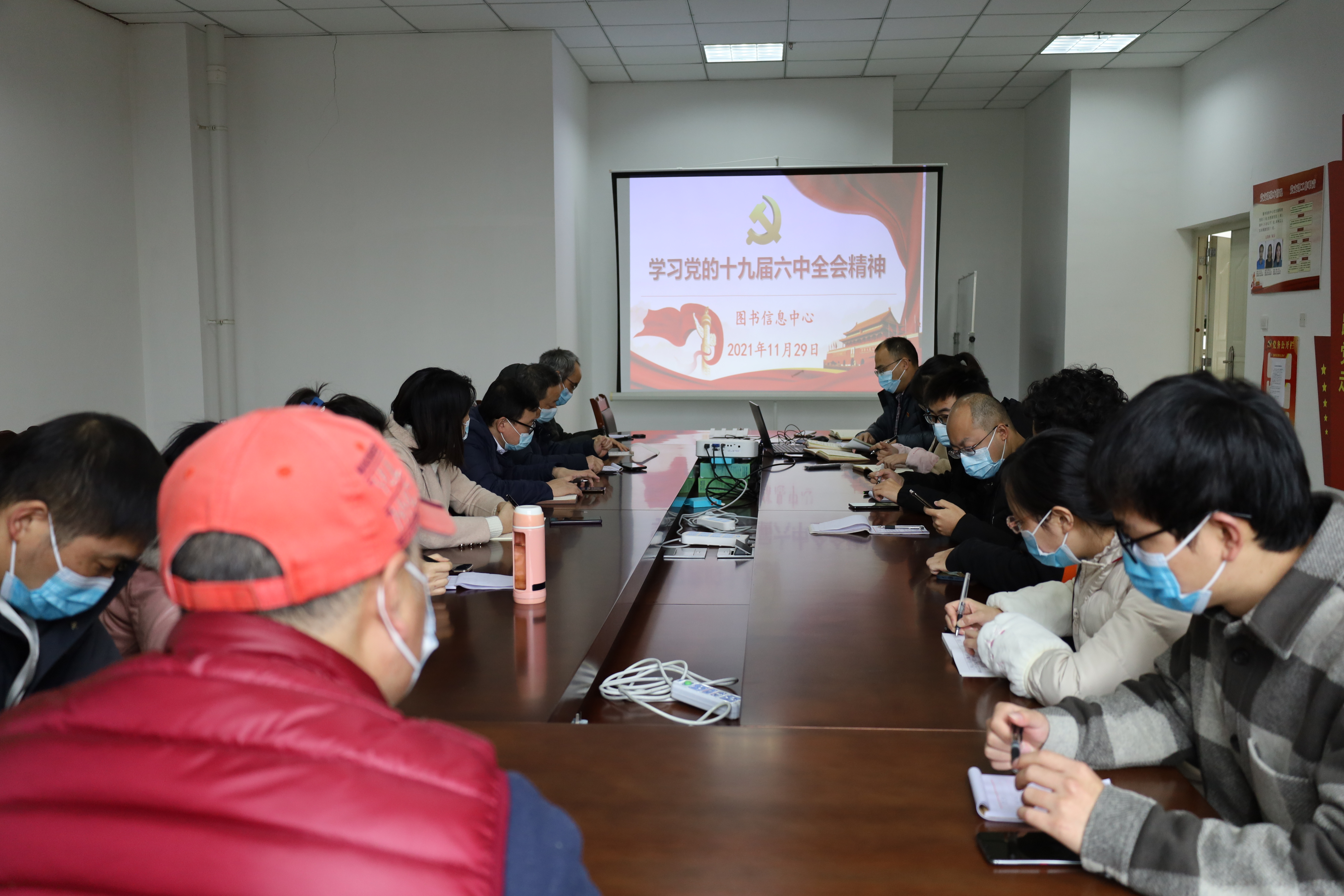 为了深入学习宣传贯彻党的十九届六中全会精神,牢牢把握正确政治方向,推动全会精神入脑入心、走深走实,11月29日,图书信息中心组织部门全体教职工在图书馆三楼会议室集中学习党的十九届六中全会精神。会议由图书信息中心党支部书记何中华主持。