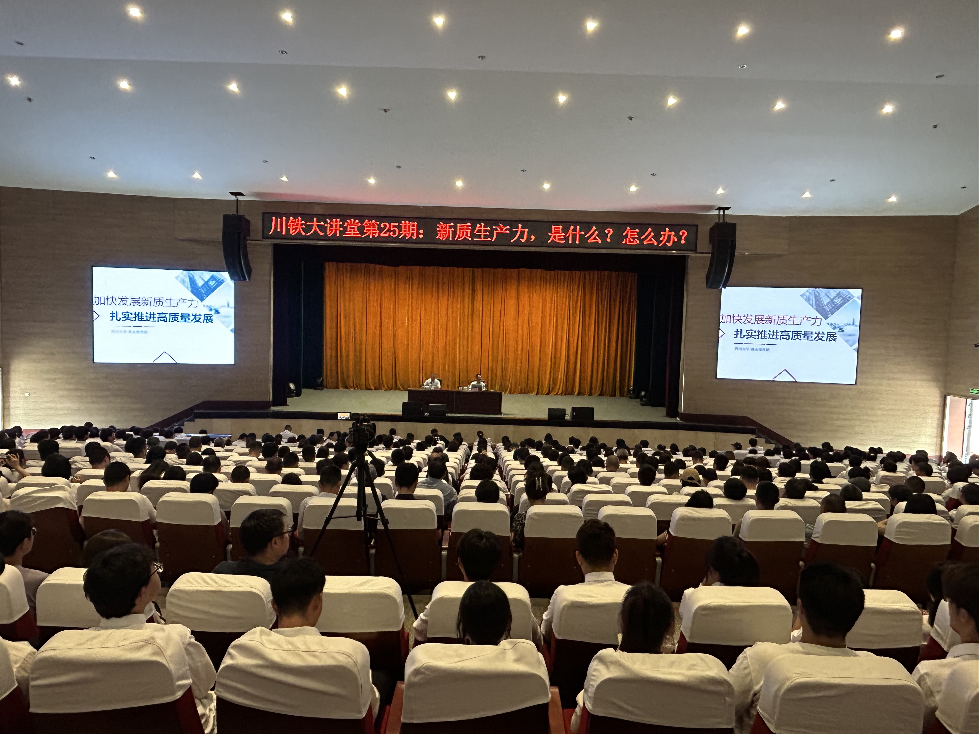 为贯彻落实习近平总书记关于新质生产力的重要论述,因校制宜加快发展新质生产力,5月17日,学校“川铁大讲堂”邀请中央马克思主义理论研究和建设工程首席专家、四川大学马克思主义学院院长、博士生导师蒋永穆教授,来米兰官网作题为“新质生产力是什么?怎么办”专题辅导报告。学校党委书记贺兆轩主持报告会。全体教职工、青马班、青马社、业余党校和业余团校学生700余人现场聆听报告。