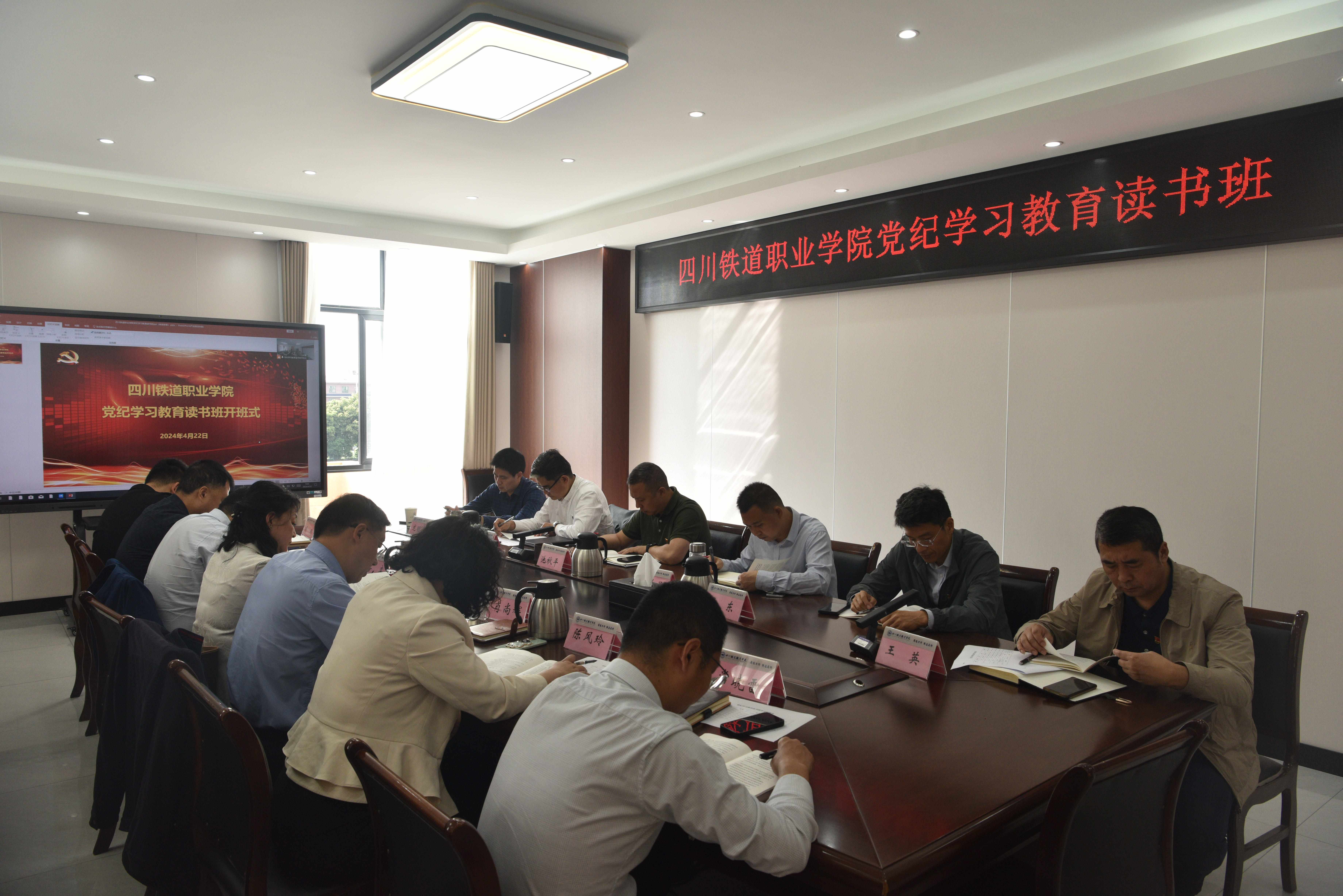 4月22日,学校在第三会议室召开党纪学习教育读书班开班仪式。会议要求,举办党纪学习教育读书班,全体党员干部要做到以上率下带头学,先学一步,学深一步,发挥“关键少数”的“头雁效应”;集中精力专门学,举办读书班,就是让党员干部协调好工学矛盾,抽出时间集中精力坐下来、静下心,原原本本学、逐条逐句学;联系实际深入学,党员干部要把自己摆进去、把职责摆进去、把工作摆进去,做到学思悟践,把开展党纪学习教育同落实党中央重大决策部署及省委要求结合起来,同学校年度重点工作和创建“双高”任务紧密结合起来,推动党纪学习教育取得实实在在的成效。