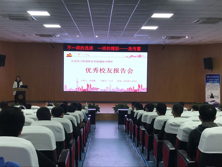 校友一行在学院党总支书记张果、教师黄小华的陪同下参观了星光大道及实训室设施。参观完校园之后,学院邀请返校校友一起参加了学院举行的校友签名留言活动,校友们纷纷在签名墙签名,并在留言板上留下了对母校的祝福。两位优秀校友申建领、吴传霞在学术报告厅作报告。我院副院长王立主持,3名教师代表及学生代表参会。两位校友庆祝母校建校70周年,并追忆了在校求学的经历。此外,申建领校友结合中国高铁发展对传统接触网技术的挑战指导铁路专业学生如何做好个人职业生涯规划。而吴传霞校友与在场学生互动,解答了学生关于成长、学习、选择以及就业等方面的困惑。