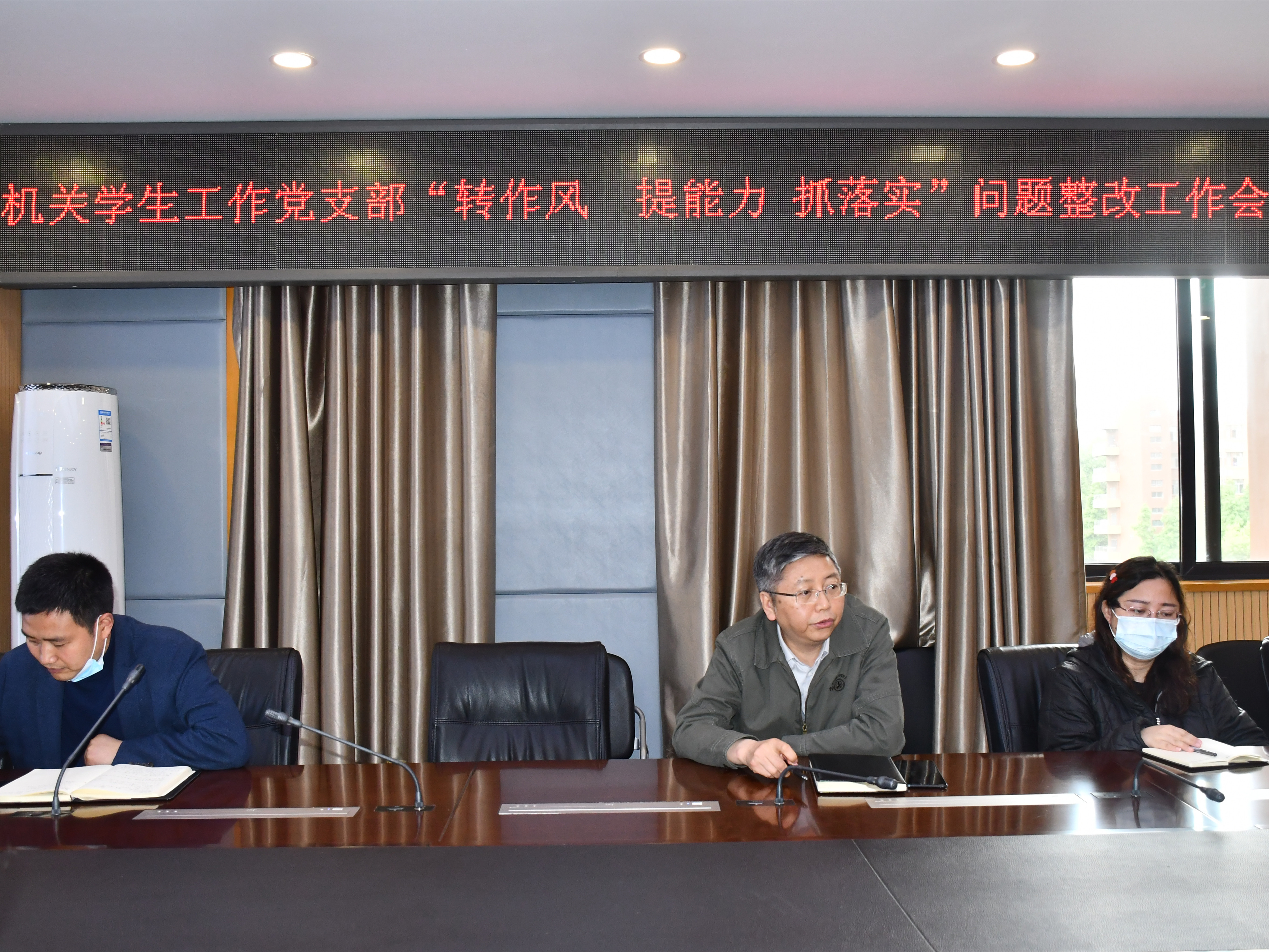 4月18日下午,机关学生工作党支部在第五会议室召开扩大会议,开展“转作风、提能力、抓落实”问题整改工作会。吴斌副校长以普通党员身份参加会议,学生处/就业处、校团委全体成员参加会议,会议由支部书记朱俐主持。