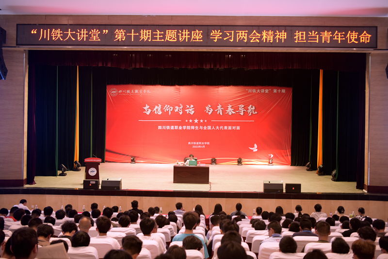 为推动学习贯彻全国“两会”精神走深走实,4月17日下午,十四届全国人大代表、眉山市青神中学副校长王晓梅应邀来校开讲。党委副书记刘昊君主持报告会,1600余名师生代表通过线上线下相结合的形式聆听了报告。
