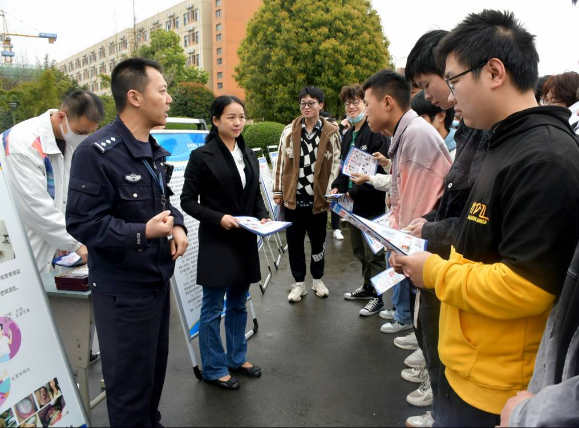 为切实提高校园师生涉电信网络诈骗以及毒品侵害的防范意识和应对能力,近日,学生处联合郫都区安德街道派出所共同开展了“防诈骗、禁毒”知识进校园宣传活动。