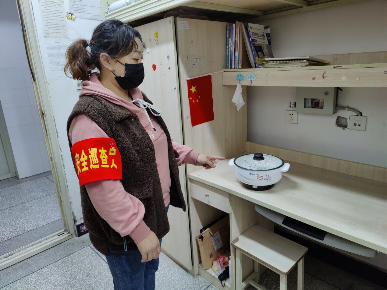 开学以来,结合疫情防控形势,学生处公寓管理科加大学生公寓管理力度,采取宿管员带队网格化普查、宿管会干部点对点检查、学生处不定期抽查等方式,对学生公寓1200余间学生宿舍进行了全面排查。重点检查寝室内存放使用大功率电器、管制刀具、私拉乱接等情况。检查过程中,老师们对存在的问题进行一一纠正,结合其他院校学生公寓使用大功率电器发生火灾和存放管制刀具发生刑事案件等典型案例,给同学们耐心细致的讲解,对存在的问题现场纠正并提出整改意见。