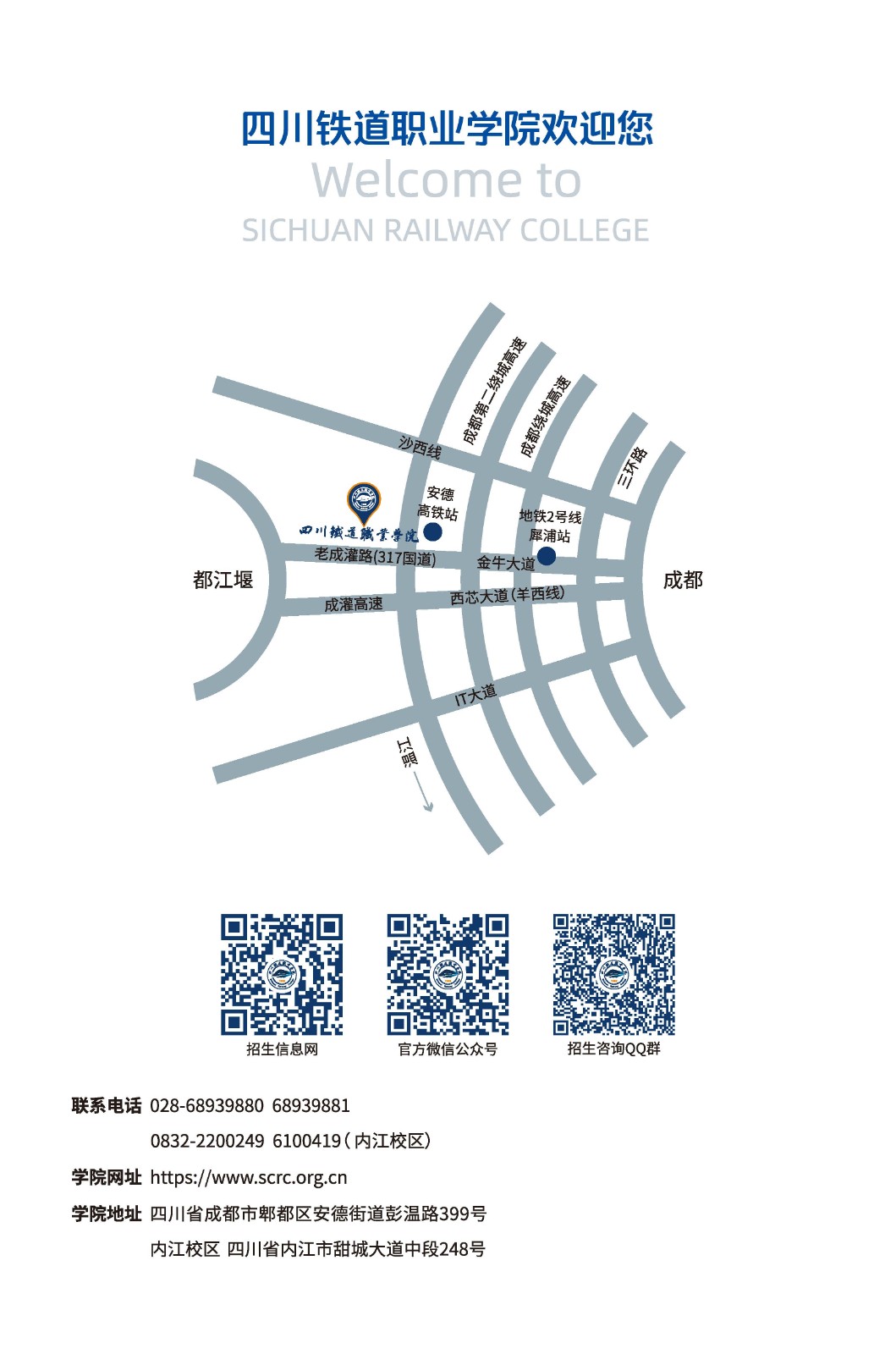 地址:成都市郫都区安德街道彭温路399号 招生代码:5183 招生电话:028-68939881 028-68939880