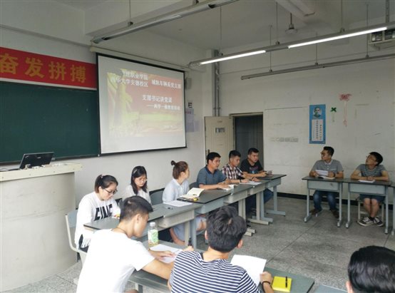 2016年6月27日下午,城轨车辆系在教学楼1209教室举行了支部书记讲党课活动,主要目的是在基层开展“两学一做”学习教育,全系在校的四位教师党员,两位学生党员以及十七名入党积极分子参加了本次讲课,并认真做好学习笔记。课堂上,党支部书记龙明贵同志首先解读了习近平总书记关于“中国梦,复兴梦”和“发扬钉子精神,一张好蓝图一干到底”的两次重要讲话内容,然后讲述了学校的发展历程和优良传统,提出了崭新的城轨车辆系的发展规划及当前我们存在的主要问题和困难,让我们感受到了什么是“中国梦”,作为城轨车辆系的一员应该如何发扬钉子精神去建设我们的“中国梦”,使在场的同志倍受鼓舞。