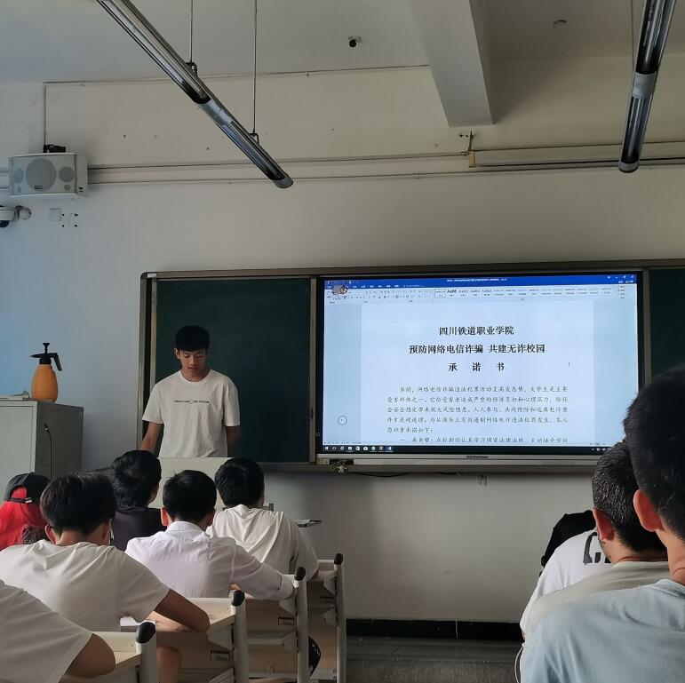 为提高学生安全防范意识,6月20日,城市轨道交通学院组织各班开展防范电信网络诈骗为主题教育活动。 学院组织各班学生观看学习了《平安校园——谨防电信诈骗》系列视频及《远离“两卡”犯罪,共建平安校园,“断卡”行动安全教育警示片》,辅导员对网络诈骗形式、手段做了详细解读,列举了发生在我们身边的真实案例,同学们深受教育,引起了强烈反响。并督促全体同学们关注 “熊猫反诈”公众号、下载“国家反诈中心APP”,了解更多网络安全知识,对网络诈骗信息有更全面的认识。同学们都表示:严密保护好自己的个人信息,对网络借贷平台做到高度警惕、严格提防。随后,每名学生抄写了一份《预防电信网络诈骗 共建误炸校园》承诺书,加深了认识。 防电信网络诈骗教育,贵在日常,重在经常。通过广泛宣传教育,引导广大学生从思想上树牢安全底线,不贪便宜,仔细鉴别,严加防范,使用安全的支付工具作为交易手段,帮助学生树立正确的消费理念和良好的生活习惯。