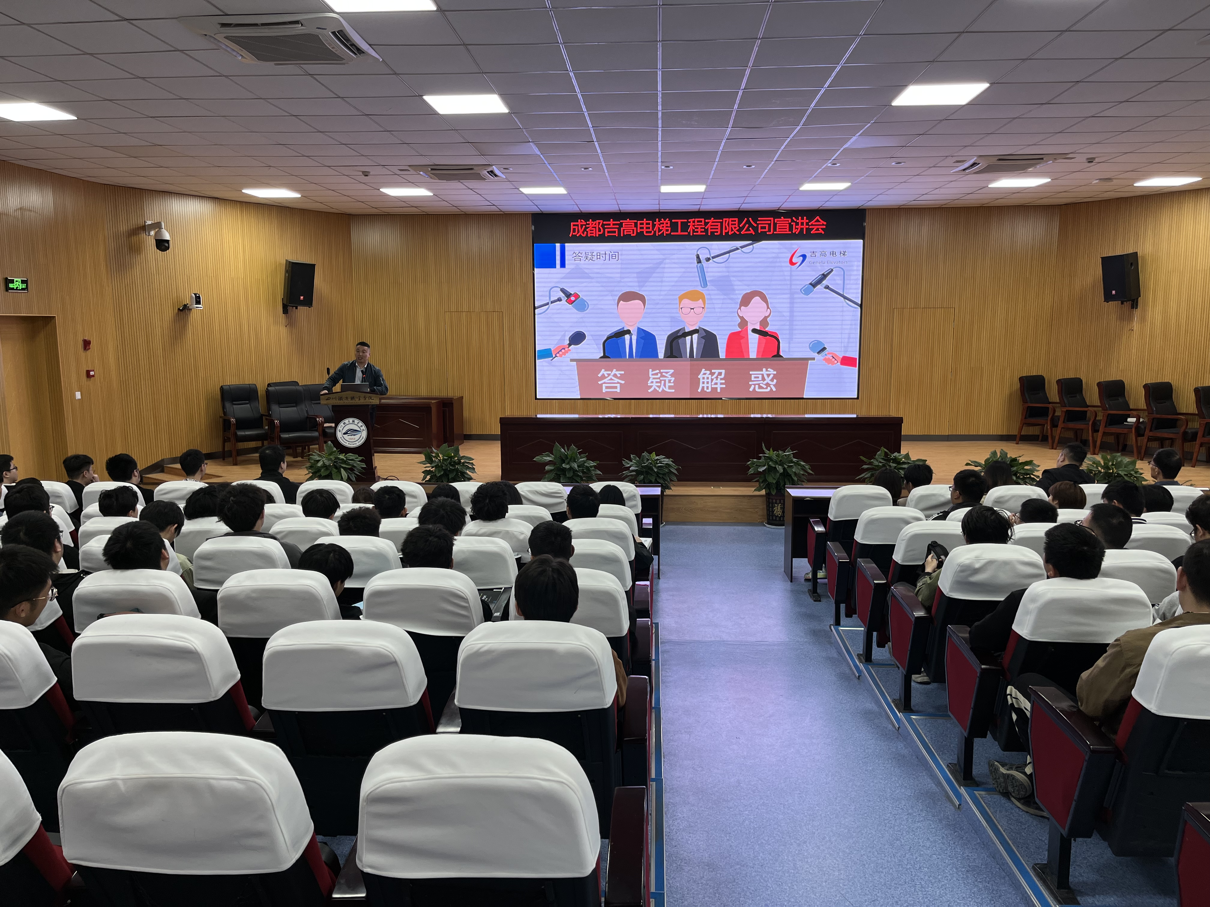 为促进学校与企业之间的深度合作,4月13日,城市轨道交通学院邀请成都吉高电梯工程有限公司、四川上通电梯工程有限公司和成都九信电梯有限公司到校开展招聘宣讲及校企合作交流会。 宣讲会上,三家电梯公司介绍了企业基本情况、岗位需求、职业发展、应聘要求等,并针对学生提出的问题进行解答。