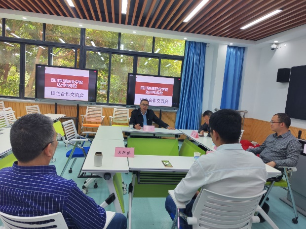 为贯彻落实党的二十大关于产教融合、科教融汇的决策部署,促进校企资源共享、产学合作共赢,4月26日,达州电务段总工程师董皓、教育科教师宋连桥到电信工程学院进行调研,深入探讨校企合作事宜。校企双方在2302教室举行座谈交流会。电信工程学院院长凌杰、专任教师陈光军、李殿钢、杜中彦参加座谈。 凌杰对达州电务段两位专家的到来表示热烈欢迎,并介绍了电信工程学院专业设置、师资和课程建设等基本情况。 董皓介绍了达州电务段基本情况、现场技术革新、未来人才需求以及职工培训需要。他指出以现场设备运用存在的问题为突破点,校企双方可以开展科研及项目合作,建议定期举行校企交流会,期待校企合作碰撞出技术革新和改进的火花。 接下来,学院将与企业共同建设微课,满足现场培训需求,并将新技术引进课堂,实现教学与生产的紧密贴合。 座谈结束后,达州电务段一行参观了学院的实验实训教室。