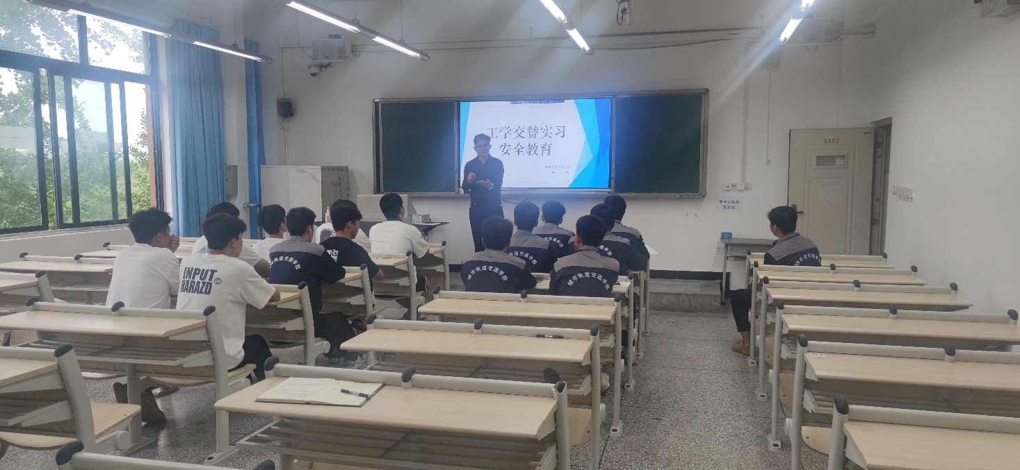 为保证确保实习安全、有序、顺利进行。 6月2日,城市轨道交通学院对首批派往成都中车四方轨道车辆有限公司的2021级16名实习学生进行动员及安全教育。学院党总支书记王文杰、院长杨凤、教研室主任杜亚林、带队教师周珩围绕政治思想、安全纪律、实习任务、实习鉴定、实习管理等方面对学生做了全面的教育引导。他们希望同学们遵守公司规章制度,严格要求自己,学以致用,努力提高专业技能,团结协作,不怕困难,勇于担当,展现良好的精神风貌和意志品质。