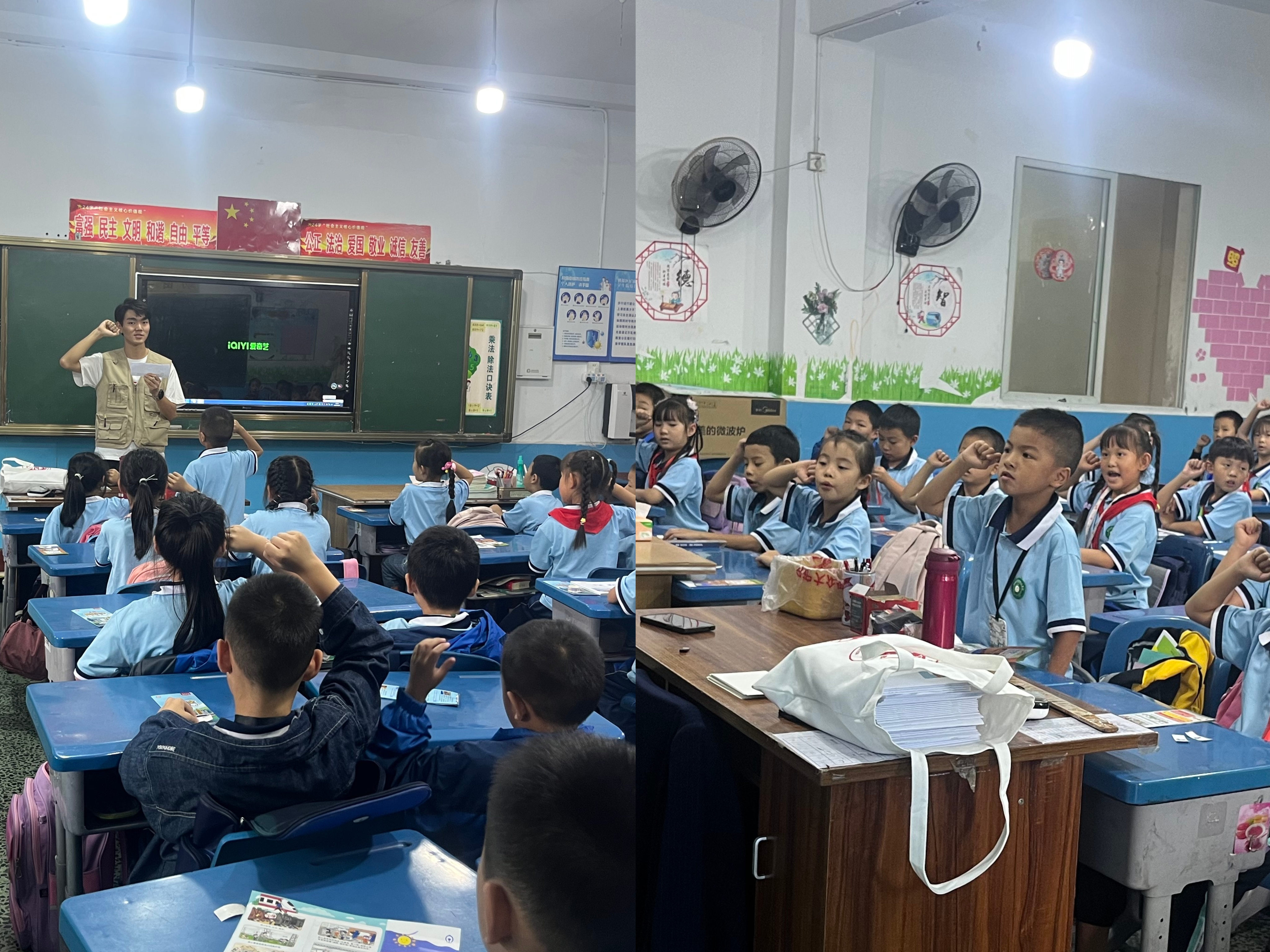 本次活动主题围绕“知路、爱路、护路”进行安全教育。“铁小川”志愿团队面对热情、纯真的二年级小朋友主要从不文明乘车行为、随意摆放障碍物、破坏铁路设施设备以及攀爬铁路车辆和通信电杆等危险行为展开铁路安全知识科普。通过“铁小川”铁路沿线真实案列讲解与动漫视频相结合的方式,让小朋友们参与其中,学习到了如何安全文明乘坐高铁;认识到了铁路安全的重要性;并愿意参与到宣传维护铁路安全中去。最后全体同学在“铁小川”的带领下进行争做“爱路、护路”小卫士宣誓,承诺认真学习铁路安全知识,积极向同学和家人宣传铁路运输安全知识,勇于制止和举报破坏铁路的不法行为,用实际行动确保自己的人身安全,确保铁路的安全通畅。林军和新兴学校教师代表在本次活动后结束后给予4名“铁小川”志愿者高度评价。
