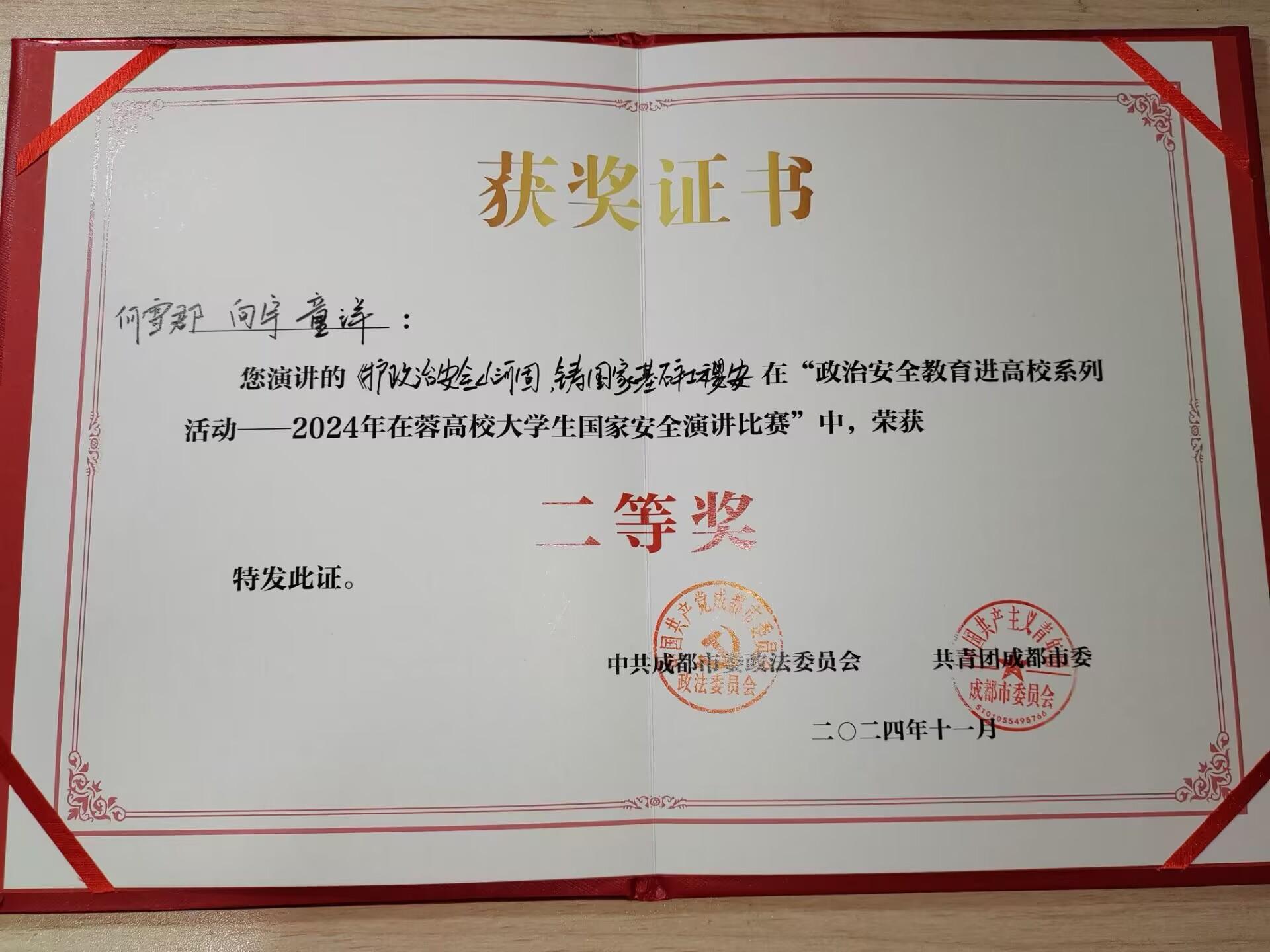 | 经济管理学院学子在“2024 年在蓉高校国家安全演讲比赛”中喜获佳绩 |
