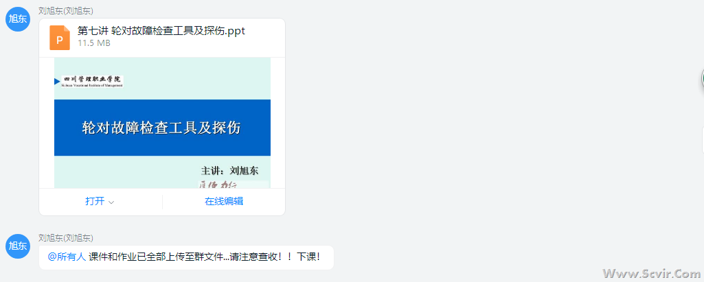 马元老师通过钉钉向机车16A1班级的学生进行《机车乘务员通用知识》授课。