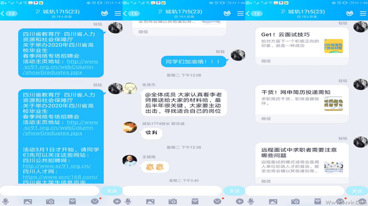 图1 城轨车辆系学生加入抗疫志愿行动 当前,新冠肺炎疫情防控取得了成效但学生居家防疫仍在持续,除了调整新学期的教学进度和授课方式,针对未就业学生的就业指导工作也至关重要。城轨车辆系指定毕业班班主任和辅导员老师共同协作,通过建立未就业班级群,线上指导学生求职、面试。切实保障应届毕业生的就业权益,最大程度的降低疫情对同学们求职的影响。