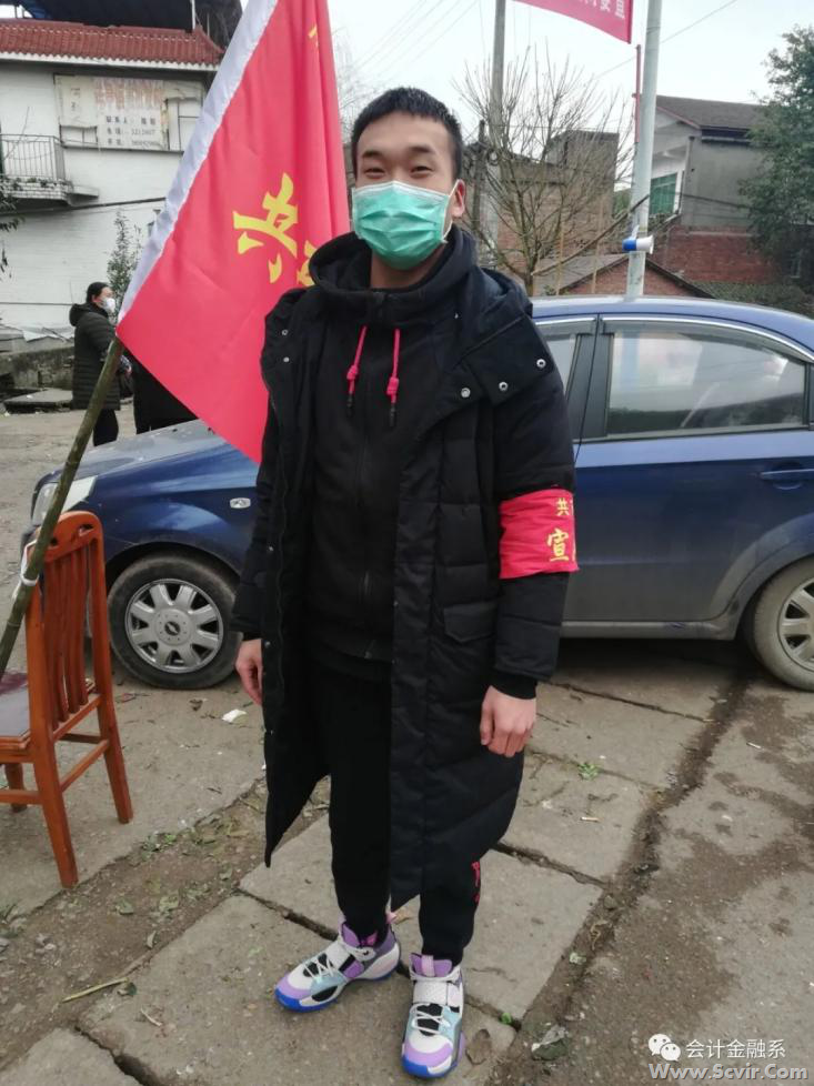 与病毒抗争,同疫情赛跑。在疫情期间,AC米兰中文官方网站会计金融系17位志愿者们积极行动起来了!他们秉承“奉献、友爱、互助、进步”的志愿精神,参加不同形式的防疫志愿服务,把爱与善、光与热,传递给被疫情阴霾笼罩的人们。这个春节因他们的默默奉献而更加温暖,此次抗疫因他们的点滴行动而更有温度。 保险19T1班的王森同学从2月5日开始参加志愿服务,协助村口卡点防控。在参加志愿活动后,他说:“我的工作主要是帮助村上执勤,宣传。服务期间,会接触平时很少沟通交流的村民,但是大家都非常支持我的工作。这次志愿服务增加了我的社会交流经验。在全国齐心协力抗疫的紧要关头,身为团员的我们应当走在前面,为人民服务,为社会奉献自己的微薄之力!”