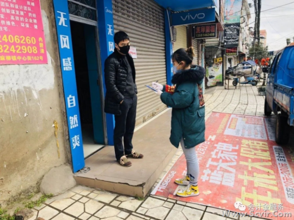 (陈冰立同学在疫情期间挨家挨户走访) 会计18T1班的袁德睿同学在阿坝藏族羌族自治州理县当民兵志愿者。他的任务是应急巡逻,在宣传防控疫情的同时监督并管理县城范围内防控意识薄弱、未带口罩、聚众的人员,对其进行劝说,并上报给相关部门。对于这次参与志愿服务,他的感言简单而朴实:“抗击疫情嘛,能出一份力是一份嘛!”