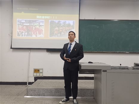活动分为暑期“三下乡”马边社会实践分享、读书分享和全体大会三部分。首先是高盛宇同学就今年8月代表青马社参与校团委组织的为期一周的暑期“三下乡”马边社会实践活动进行了分享,他表示:很自豪能成为我院青马社的一员,“三下乡”马边社会实践活动让我深刻感受了国家对少数民族的惠民好政策,真切体会了精准扶贫给老百姓生活带来的崭新变化。最后,感慨地呼吁学弟学妹牢记习总书记提出的“把学习奋斗的具体目标同民族复兴的伟大目标结合起来,把小我融入大我,立志作出我们这一代人的历史贡献”,践行我院“厚德力行、博道通术”的校训,掌握专业知识,胸怀星辰大海,脚踏祖国土地。 机车18T4高盛宇进行分享 在读书分享会中,9位同学站上讲台,围绕《习近平在正定》《习近平的七年知青岁月》两书,以“不忘初心,砥砺前行”“习以为苦 勤以为常”“追伟人足迹,传承伟人精神”等为主题,从不同的角度和视野,结合PPT、以演讲的形式分享了自己的阅读思考与感悟。纷纷表示习总书记的成长历程是对“不忘初心、牢记使命”的生动诠释,让人灵魂得到洗礼、精神得到鼓舞、思想得到升华、学习得到启迪,我们将以习总书记为榜样,学习他“我将无我,不负人民”的忘我精神,以民族复兴为己任,提升本领,践行青年一代的使命当担。最后,龙燕老师对此次读书分享会作了点评,希望同学们通过此次活动有知识和精神层面的收获,不忘初心,坚守信仰。 在全体大会中,龙燕老师向全体成员宣读了青马社章程和制度,强调了青马社成立的宗旨,并对青马社成员表达了殷切期望,坚守初心,将有意义的事情做得有意思。