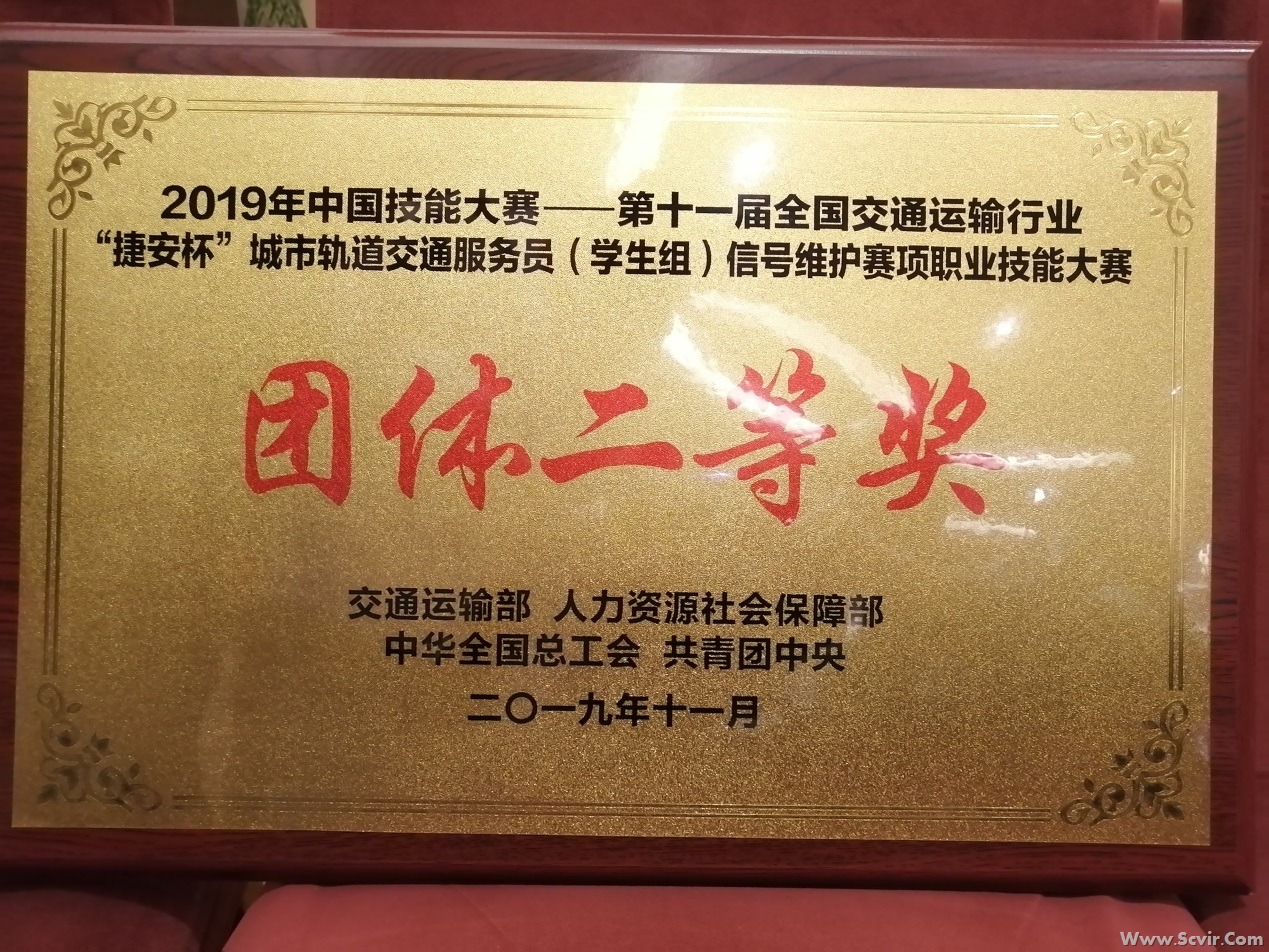 2019年11月19日至21日, 2019年中国技能大赛——第十一届全国交通运输行业“捷安杯”职业技能大赛在天津梅江会展中心举行。我院学生组信号维护赛项代表队经过前期的四川预赛、重庆拉练赛,最终进入了全国总决赛,与来自全国36所职业院校的代表队进行激烈角逐。经过两天的激烈比赛,我院代表队获得了团体二等奖的好成绩。电信工程系曾佳美、毛启章两位同学获得学生组二等奖,杜中彦、聂富春老师获优秀指导教师奖。杜中彦老师受邀作为此次大赛的裁判,获得了优秀裁判员称号。 在此次技能大赛参赛学生的选拔中,电信工程系全系学生积极报名,在训练过程中实行末位淘汰制,经过四个多月的刻苦训练和相互配合,最终,曾佳美、毛启章两位同学以出色的现场发挥和过硬的技能脱颖而出,被选定为学院代表队队员。在备赛过程中,电信工程系领导时刻关注学生训练情况,指导教师日以继夜地对学生进行辅导,学生充分利用课余时间勤奋训练。 我院高度重视学生职业技能,强化技能操作,此次大赛点燃了全院师生参加全国职业技能大赛的热情,在师生群体中营造了学技能、练技能的良好氛围,进一步推动了“以赛促教、以赛促学”的教育教学改革模式,锻炼了队伍,对提高办学质量和水平起到了促进作用。