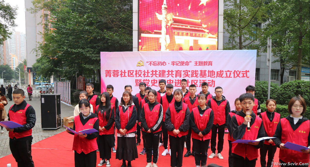 2019年11月9日,为落实习近平总书记2019年3月18日“把思政小课堂同社会大课堂结合起来”讲话精神的要求,思政部联合电气工程系党总支组织我院190名师生到德源镇菁蓉社区开展校社“共建共育同发展”主题实践研修活动。 德源街道党工委副书记、纪工委书记罗曦、德源街道菁蓉社区党委书记方福成、党委副书记曹庆、德源街道菁蓉社区主任魏朝明出席了此次活动,我院思政部主任朱红、电气工程系党总支书记张果、思政部全体教职工和电气工程系值班班主任、青马社全体成员和学生代表共计190名师生和菁蓉社区居民代表参加了此次活动。
