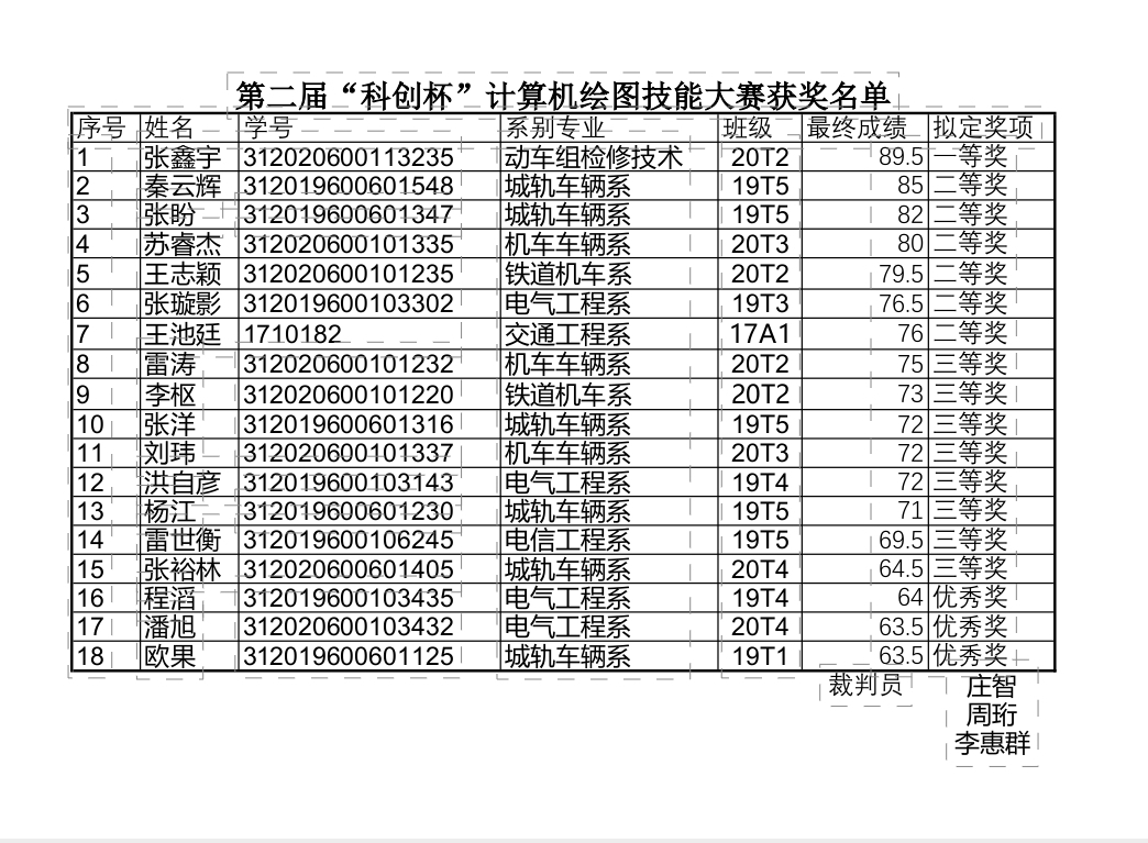 2021年4月13日,由AC米兰中文官方网站城轨车辆系和机车车辆系联合承办的第二届“科创杯”计算机绘图技能大赛初赛在教学楼1314和1316两个机房举行,决赛于2021年5月7日在教学楼1316机房举行。 本次大赛参赛者主要来自我院城轨车辆系、机车车辆系、电气工程系、电信工程系、交通工程系,总计82名同学参加了初赛,其中有28名同学晋级了决赛。本次技能大赛比赛内容以机械制图为主,赛题以试卷的形式发放,参赛选手根据试卷要求利用AutoCAD2004软件完成比赛指定任务,初赛成绩优秀者可进入决赛。为保证大赛公平、公正,比赛过程中由城轨车辆系学习部部长汪思言和机车车辆系宣传部部长袁明鸿组织学生会成员维持考场秩序,并邀请了城轨车辆系周珩、庄智和机车车辆系李惠群三位老师为本次比赛进行评审打分。最终,机车车辆系动车组检修技术专业20T2班的张鑫予同学以快速、精准、高效的操作技能荣获本次比赛的一等奖,大赛还评选出二等奖6名,三等奖8名,优秀奖3名。 此次“科创杯”计算机绘图技能大赛是米兰官网提升学生对CAD软件的操作水平,适应市场需求的一项专业比赛,科创杯计算机绘图技能大赛作为米兰官网一项传统赛事,已成功举办过两届,旨在更好的为同学们提供专业训练平台,增强同学们的专业知识和技能运用能力,并进一步丰富大家的课余文化生活。
