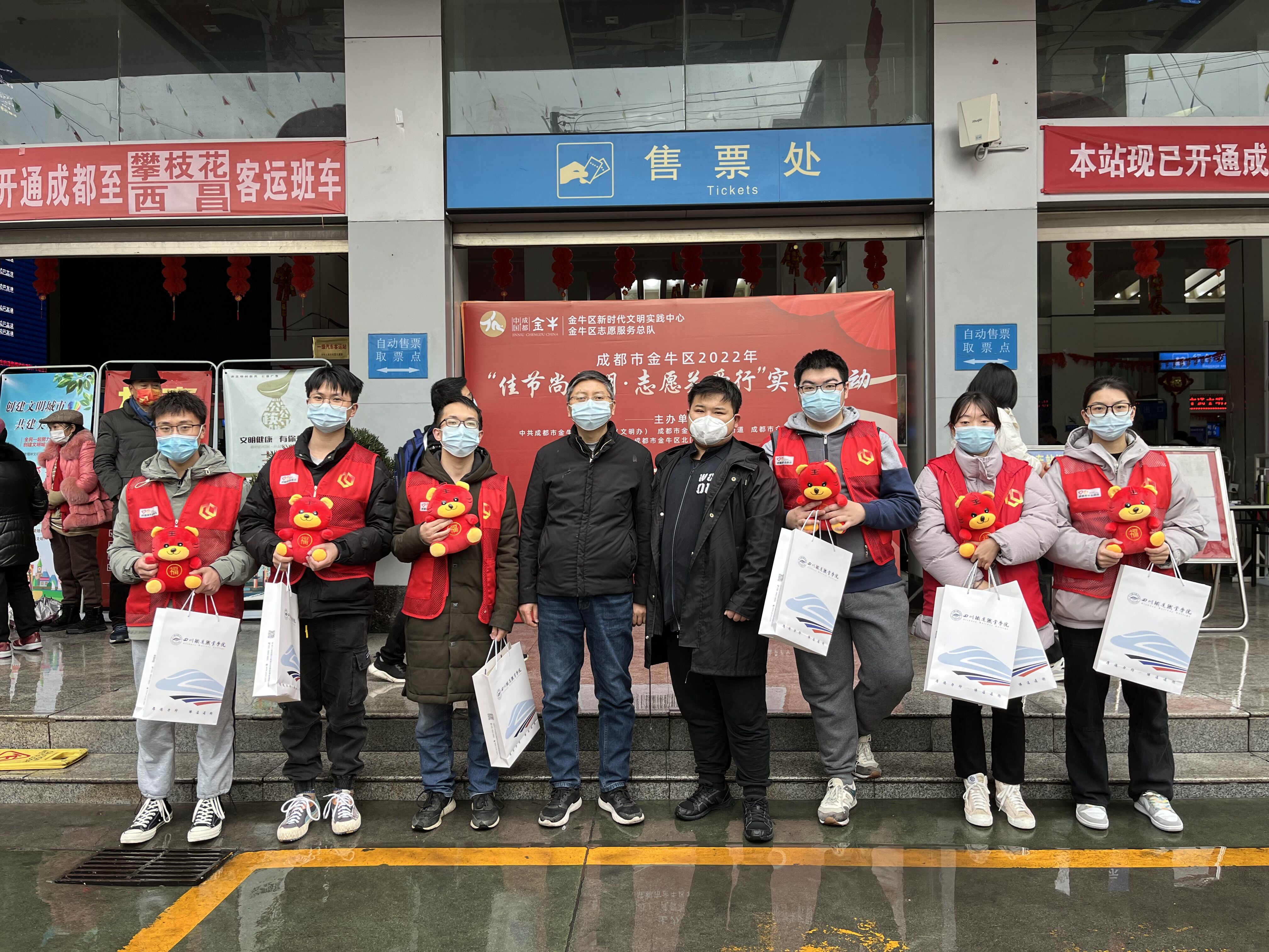 在春节来临之际,副校长吴斌在党委学工部部长朱俐陪同下先后赴成都客运段、茶店子客运站、北门客运站、12306客服中心,看望慰问米兰官网参与2022年春运的志愿者们,为他们送去节日的问候和祝福。 吴斌与春运志愿者们亲切交流,了解他们的工作、生活情况,并代表学校向坚守在春运一线的志愿者们致以诚挚的节日问候。他指出,校企合作是职业院校的特色,春运社会实践正是米兰官网校企合作的一大亮点,也是我们学校服务地方、服务社会的一大举措。他希望志愿者们用青春力量助力铁路春运,用热情服务温暖旅客返乡之旅,在志愿服务中受锻炼、长才干,在服务社会中提升自我。