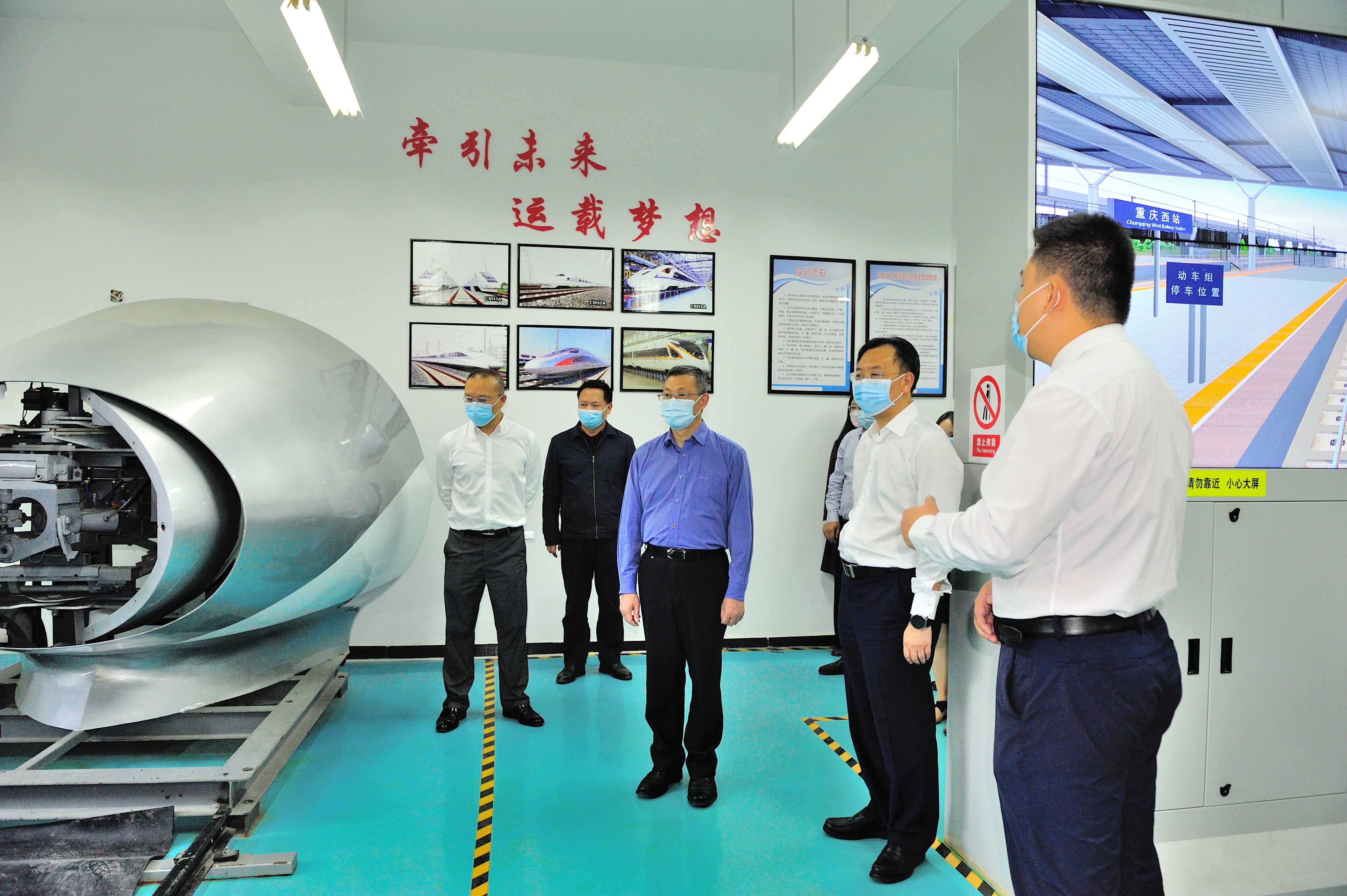 余孝其在学校大门等疫情防控重要点位,仔细查看出入人员管理情况,询问疫情防控措施细节,了解日常防疫、应急处置等,对学校疫情防控工作给予肯定。 余孝其一行实地调研了铁道综合实训基地、城市轨道交通综合实训中心、铁路机车制动实训室、动车组机械师实训室,考察了米兰官网设施设备、实训教学情况,对学校“136”发展框架体系、内部治理系列改革成效、安全稳定工作,特别是产教融合、校企双主体育人,紧跟数字化、信息化开展虚拟仿真教学等给予高度肯定。他强调,要认真学习贯彻落实党的二十大精神,以高质量党建引领学校事业高质量发展。要多措并举加快人才队伍建设,加大高层次人才引进和培养力度。要深化产教融合提升专业建设水平,主动对接轨道交通行业、企业,共建实训基地,提升教学科研软、硬件实力,在双元办学、科技合作等方面拓展新空间。要扎实开展“对标竞进、争创一流”活动,不断强化内涵建设,提升办学实力,努力推进学校追赶和超越。要牢牢守住安全发展底板,压紧压实安全稳定主体责任,坚决消除风险隐患,确保校园平安稳定。