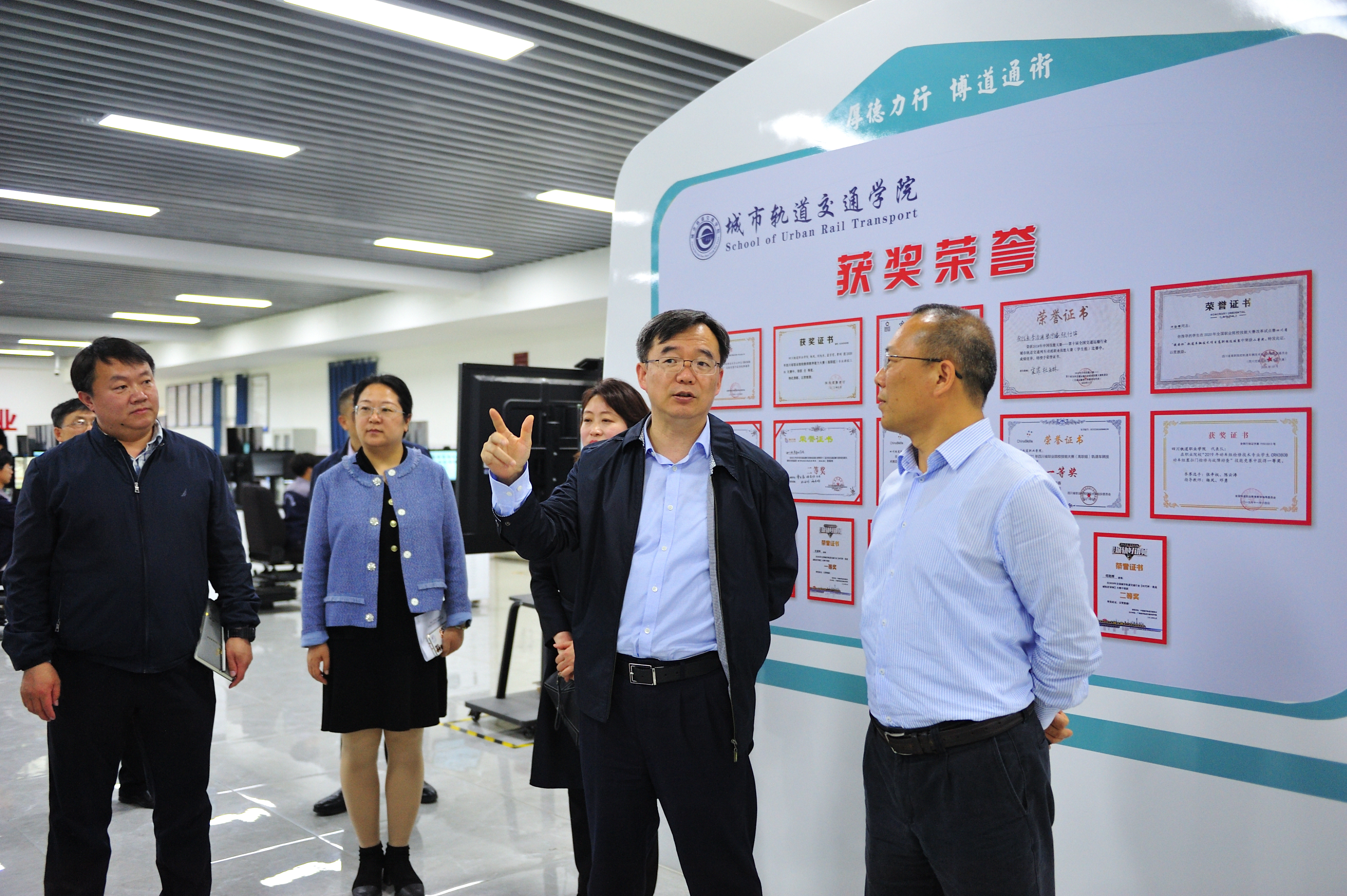 在铁道运输综合演练场、城市轨道交通实训中心,时骏一行实地观看了铁道运输企业主要工种和核心岗位群实际工作场景以及城轨车辆驾驶、检修、机电设备维护、站务、票务、安检、调度等岗位技能训练以及岗位联合演练。他强调要始终坚持以党的二十大精神为指引,聚焦交通强国、教育强国决策部署,对标“双高计划”、职教本科专业建设,持续强化专业群建设,深化产教融合、校企合作,加快融入高质量现代交通职业教育体系建设,努力培养更多高素质技术技能人才。