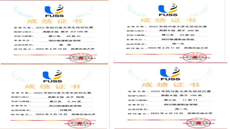 | 学校田径代表队勇夺2023年四川省大学生田径比赛男子团体第四名 |
