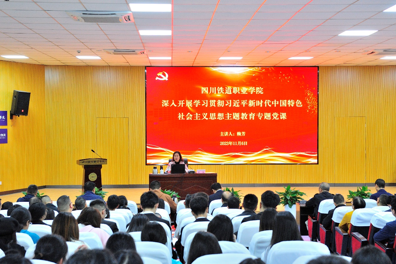按照《中共四川铁道学院委员会关于深入开展学习贯彻习近平新时代中国特色社会主义思想主题教育的实施方案》要求,11月6日,学校党委副书记、校长赖芳为全体中层干部,分管联系部门、单位全体党员干部,联系班级学生代表讲授专题党课。主题教育省委第十二巡回督导组侯国德、孙振坤参加党课。 赖芳以《深入学习习近平总书记关于教育的重要论述 推进学校事业高质量发展》为题,结合习近平总书记最新重要讲话精神和学校主题教育开展情况,围绕深刻理解教育强国建设的重大意义、深刻领悟“九个坚持”的总体要求、深刻把握学校高质量发展的机遇与挑战等三个方面进行了讲授。 赖芳深刻阐释了教育强国建设对以中国式现代化全面推进中华民族伟大复兴的重大意义,强调要原原本本、全面系统、持续深入学习习近平总书记在中央政治局第五次集体学习时的重要讲话精神,坚持从外部环境和自身规律来认识教育在强国建设中的先导性、基础性和全局性地位,从政治上看教育、从民生上抓教育、从规律上办教育;要全面贯彻党的教育方针,坚持教育为人民服务、为中国共产党治国理政服务、为巩固和发展中国特色社会主义制度服务、为改革开放和社会主义现代化建设服务;要牢牢把握教育改革发展的“九个坚持”,科学认识“九个坚持”基础上的新要求,把立德树人成效作为检验学校一切工作的根本标准,切实为中华民族伟大复兴培养社会主义建设者和接班人。