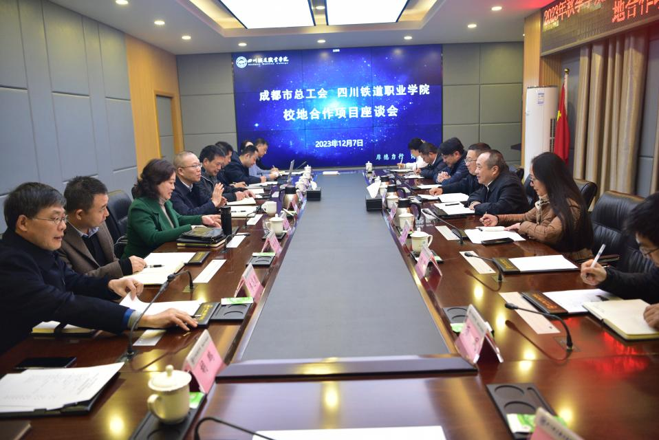 12月7日上午,成都市总工会党组成员、副主席方启军、资产部部长罗晨等一行到访学校,就深化双方合作共建的成都工匠学院轨道交通产业分院年度工作情况及进一步工作打算进行沟通交流。学校党委书记贺兆轩、校长赖芳、副校长黄勇出席座谈。