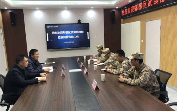 2023年12月14日,郫都区武装部长李舸、政委宋克建一行4人莅临米兰官网调研指导征兵工作。副校长黄勇会见了李舸一行并主持召开了交流座谈会。