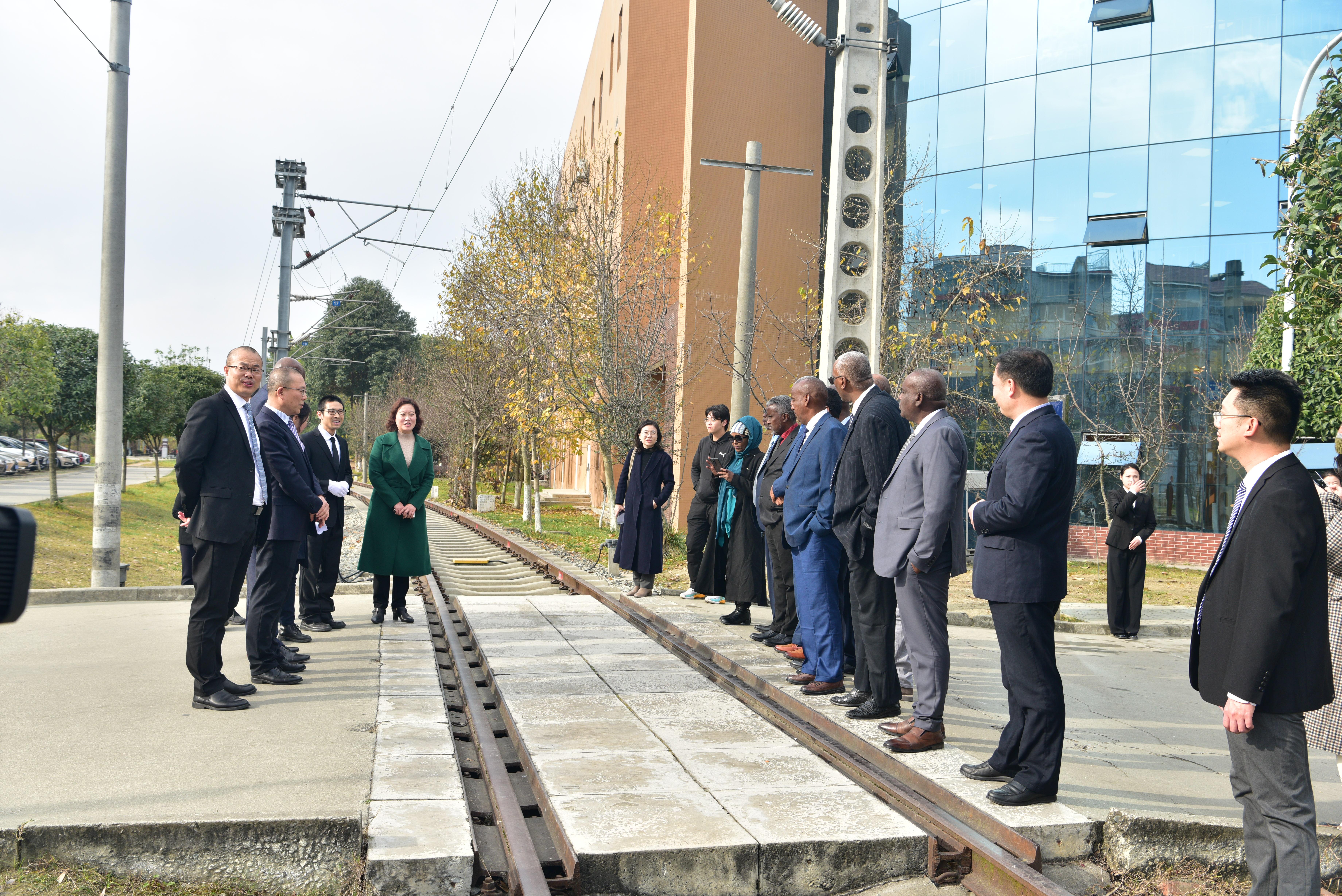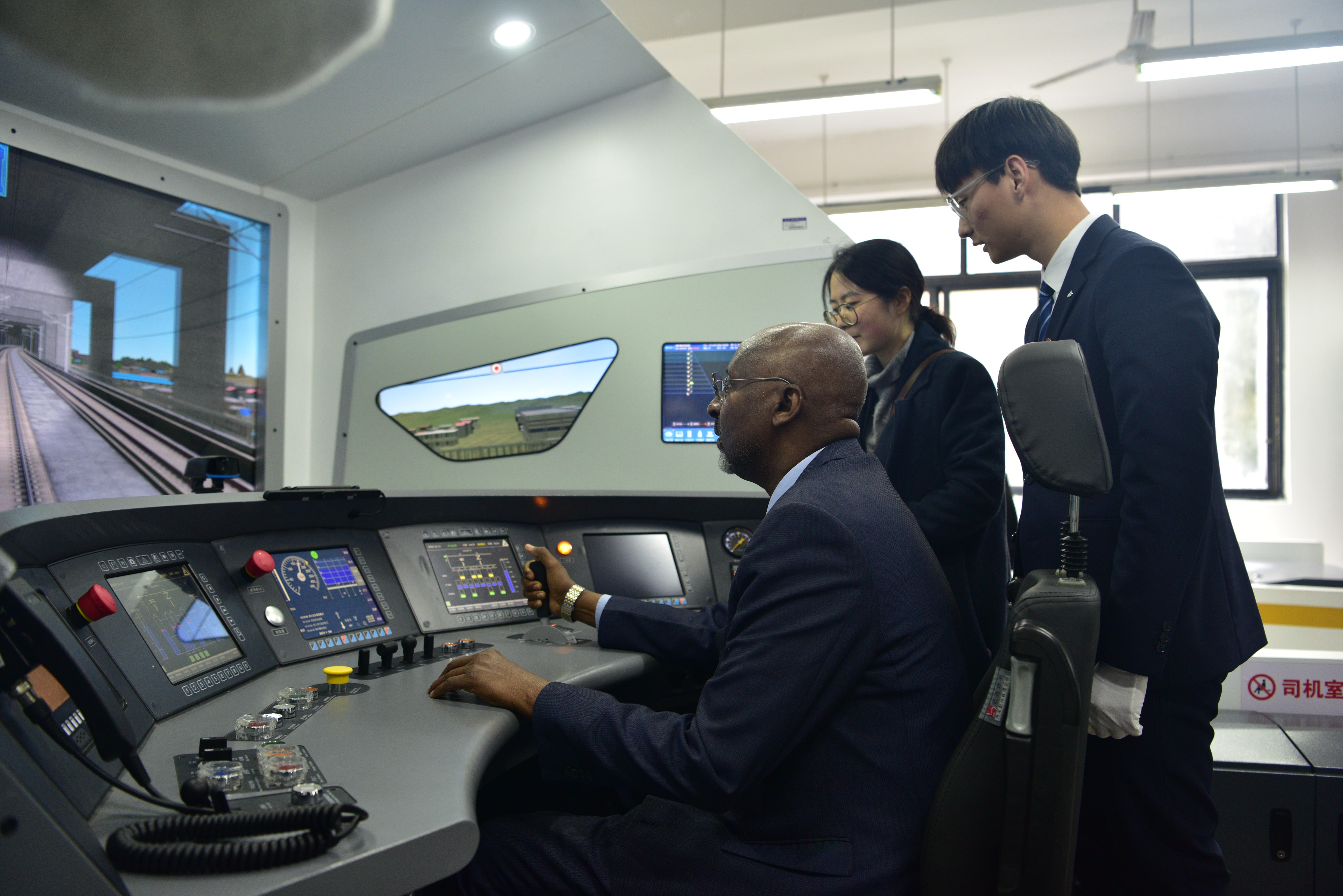 穆斯塔法部长一行首先参观了学校铁道综合实训基地、城市轨道交通综合中心、金蝶数智财经产业学院、复兴号模拟驾驶实训室等场所,他们对学校真实的实训场景、高端的虚拟与仿真相结合的实训设备、完备的实操装备给予了高度评价。