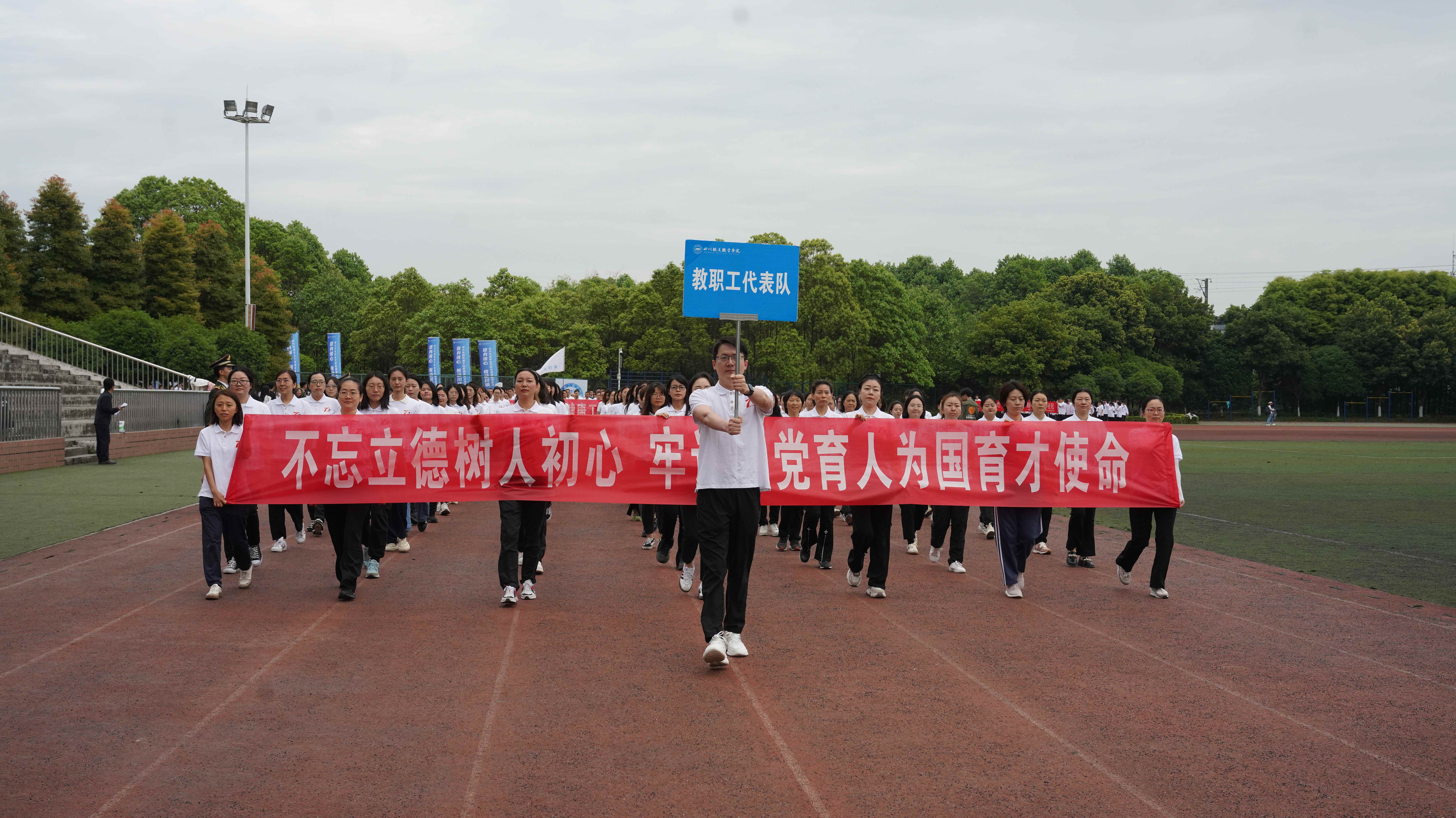 为贯彻落实习近平总书记关于加强学校体育工作的指示精神,教育引导师生树牢健康第一的理念,推动青年学生文化学习和体育锻炼协调发展,4月24日,学校隆重举办2024年体育文化节运动会,全校师生齐聚田径场参加开幕式。 上午八点三十分,开幕式正式开始。英姿飒爽的国旗护卫队、色彩绚烂的彩旗队、青春活力的鲜花队、气宇轩昂的裁判员队、教职工代表队和各学院学生代表队迈着整齐的步伐有序进场,展现了川铁师生青春洋溢、昂扬奋进的精神风貌。各方队入场后举行了升国旗仪式,全校师生齐唱《国歌》,以激昂的歌声表达对祖国的热爱之情。