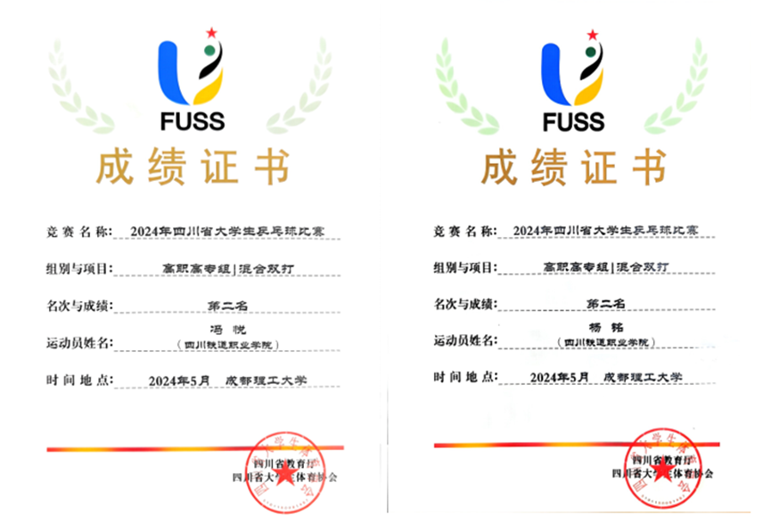 5月23日至5月26日,由四川省教育厅主办,四川省大学生体育协会、成都理工大学承办的2024年四川省大学生乒乓球锦标赛在成都城东体育公园二期乒乓球综合训练馆举行,米兰官网首次组织代表队参赛,经过激烈的角逐,米兰官网学生杨铭、冯悦在高职高专组混双项目比赛中喜获第二名。