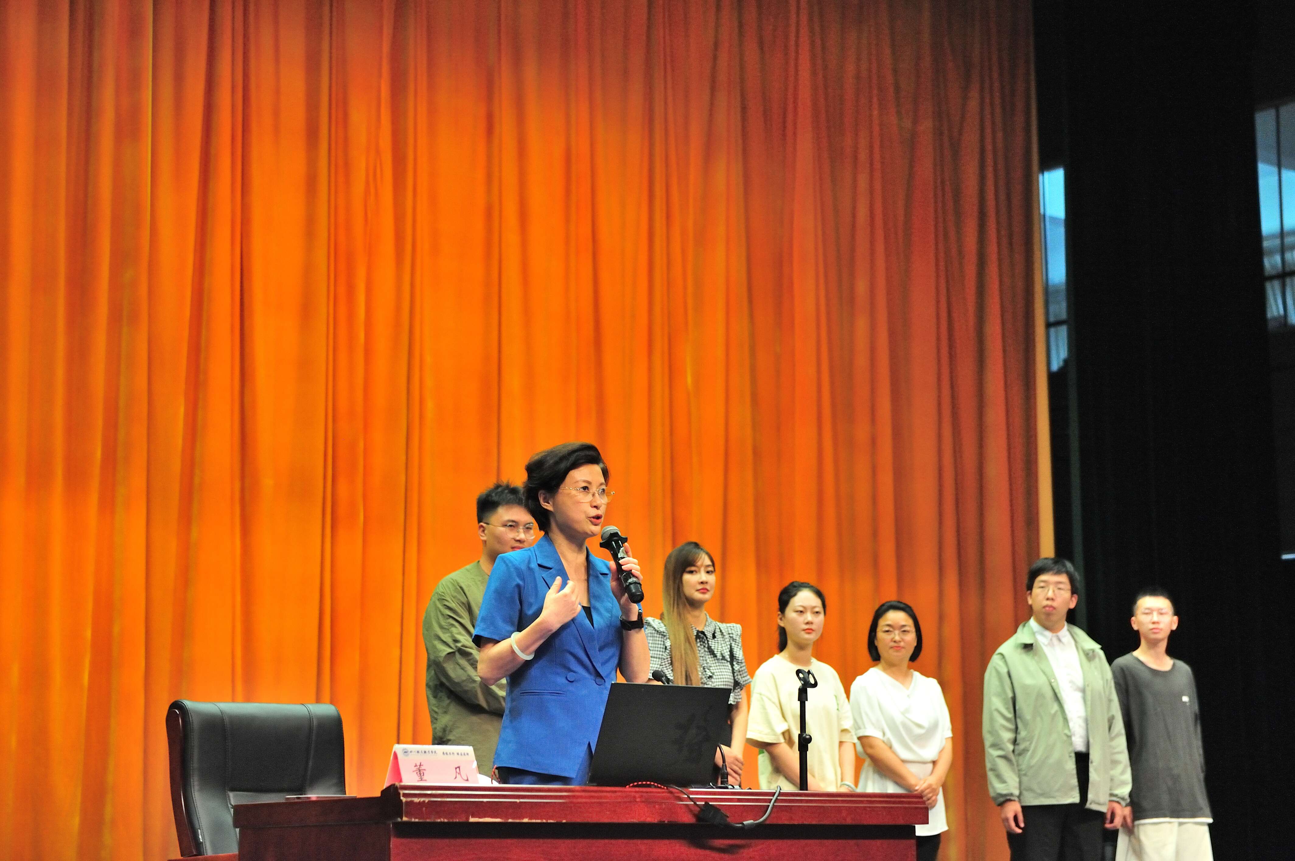 董凡老师围绕语言的作用和声音的重要性,以现场教学开放课堂的形式亲自指导师生发声技巧,亲自示范诗歌和台词的朗诵,让大家沉浸式体验到了声音艺术的魅力。董凡老师和谢黎明老师还共同表演了《金沙》《苏母》经典音乐剧目,他们精湛的演技、深厚的台词功底,赢得了师生们阵阵掌声和喝彩。