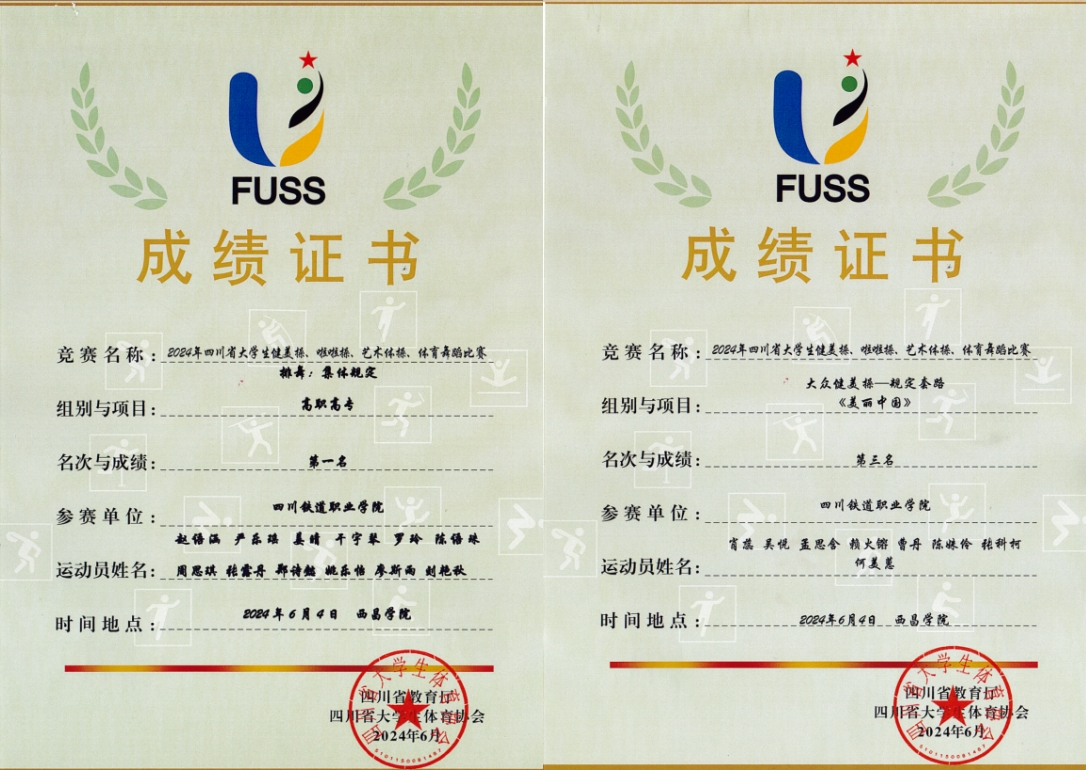 6月3日-5日,由四川省教育厅主办、四川省大学生体育协会执行、西昌学院承办的2024年四川省大学生健美操、啦啦操、艺术体操、体育舞蹈比赛在西昌学院安宁校区体育馆举行,米兰官网组织的两支代表队参加了本次比赛高职高专组两项竞赛,勇夺排舞赛项第一名、健美操比赛第三名。